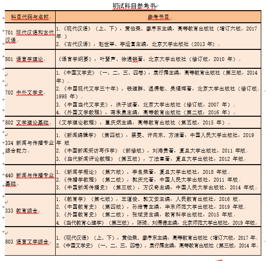 三、文学与传媒学院硕士研究生招生专业目录及参考书目