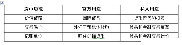 货币国际化是指能够跨越国界,在境外流通,成为国际上普遍认可的计价、结算及储备货币的过程。一个国际化货币的世界货币职能,就是在国际市场中执行价值尺度、流通手段,支付手段,贮藏手段。在此基础上,一个国际化的货币具体的职能如下表: