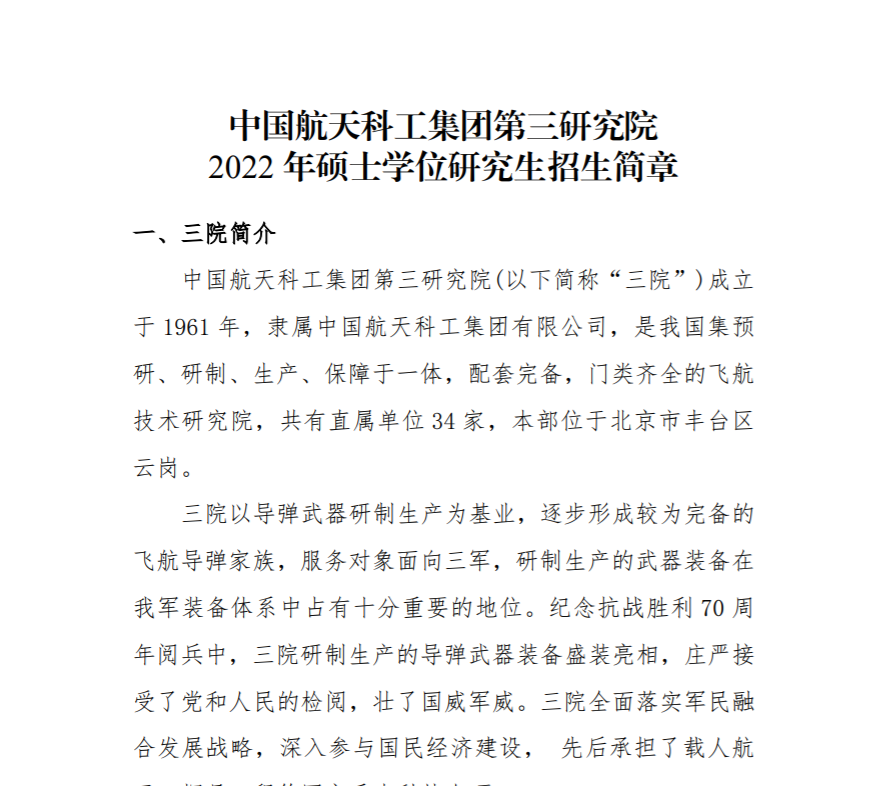 附件:2022中国航天科工集团第三研究院硕士学位研究生招生简章