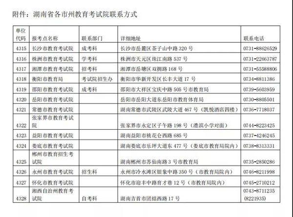 附件:湖南省各市州教育考试院联系方式