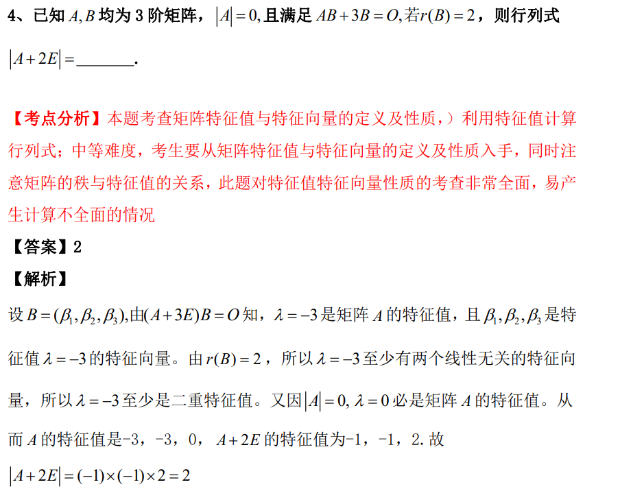 2022考研数学高频易错考点集——线性代数(四)