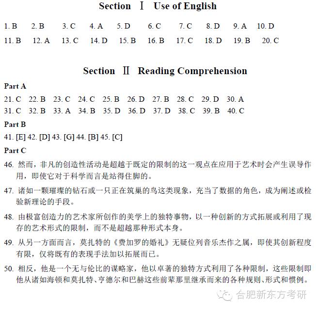 17. [C]。空格所在部分为(were) notexperiencing any sensationsin hunger,由于这一部分与 and 之前的 were fedextra food 构成并列成分,即它们所表达的是相近的内容。由第 16 题的分析可知,新研究可能会让受试吃得很饱来验证在这种情况下他们的大脑是否还会对高热量食物产生强烈的反应。如果说受试已经摄取了超量的食物,那么他们此时绝对不会再有额外的饥饿感的,因此四个选项中最符合题意的为 increased,答案为选项[C]。文中是说受试不会再有任何额外的(extra)饥饿感,但不是说外来的饥饿感,因此 external 错误,故排除选项[A]。同理,也可排除选项[B],因为文中强调的是不会再有任何饥饿感的增加,而不管它是否能被敏锐地感受到。选项[D]代入原文,指“饥饿带来的不舒服感”,也不符合原文语境,故排除。