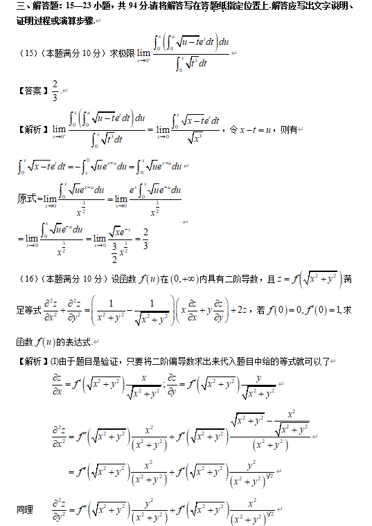2023考研数学二模拟题及解析:解答题(1)