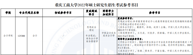 考研专业课参考书目每年可能都会有变化,考生需要持续关注这方面的消息。为方便各位考生及时获取考研各招校各专业的参考书目信息,小编特整理了相关内容,一起来看“2022重庆工商大学考研参考书目:会计学院”,供大家参考。