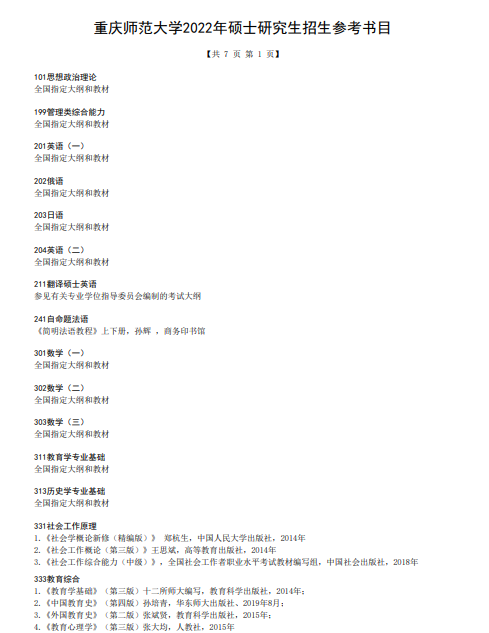 2022重庆师范大学考研参考书目