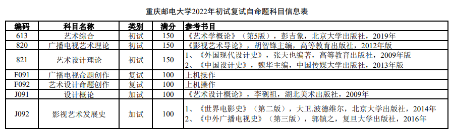 2022重庆邮电大学考研参考书目:传媒艺术学院