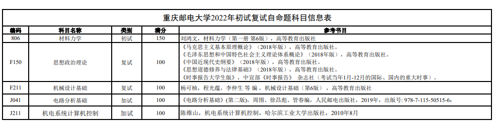 2022重庆邮电大学考研参考书目:先进制造工程学院
