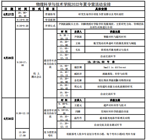 西北工业大学物理科学与技术学院2022年夏令营活动安排