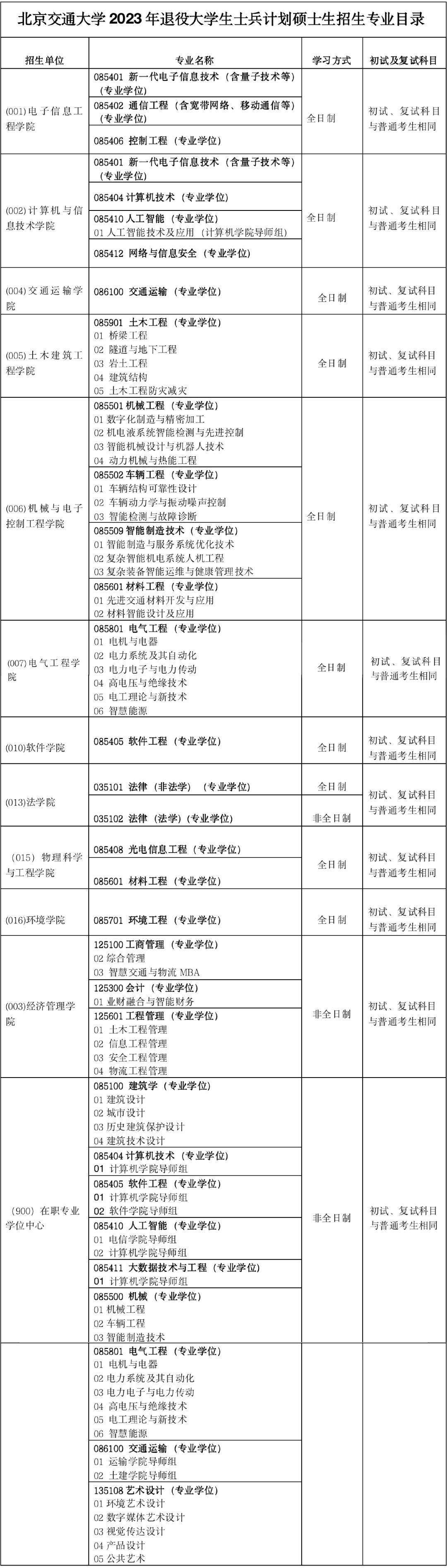 2023考研动态:北京交通大学2023年“退役大学生士兵计划”拟招收45人