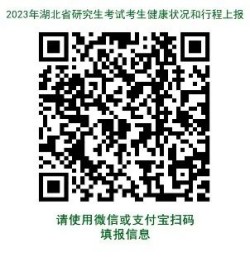 为确保我省2023年全国硕士研究生招生考试平安顺利进行,根据目前疫情防控形势,定于2022年12月3日起开放考生健康打卡系统。请所有考生于12月3日——23日每天中午12点前扫码(以下二维码)进入系统及时打卡,并按要求填报相关信息。跨区(含跨省、省内跨市)参加考试的考生要提前返回报考点所在地,落实当地疫情防控要求,确保正常赴考。