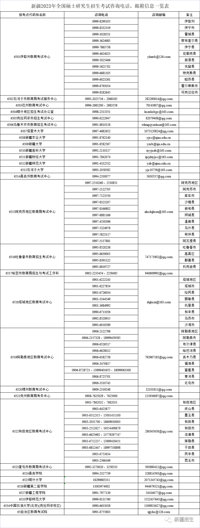 (四)请考生持续关注中国研究生招生信息网、新疆教育考试院官方网站(www.xjzk.gov.cn)和“新疆招生”微信公众号发布的相关信息,及时了解报考点所在地疫情防控要求。
