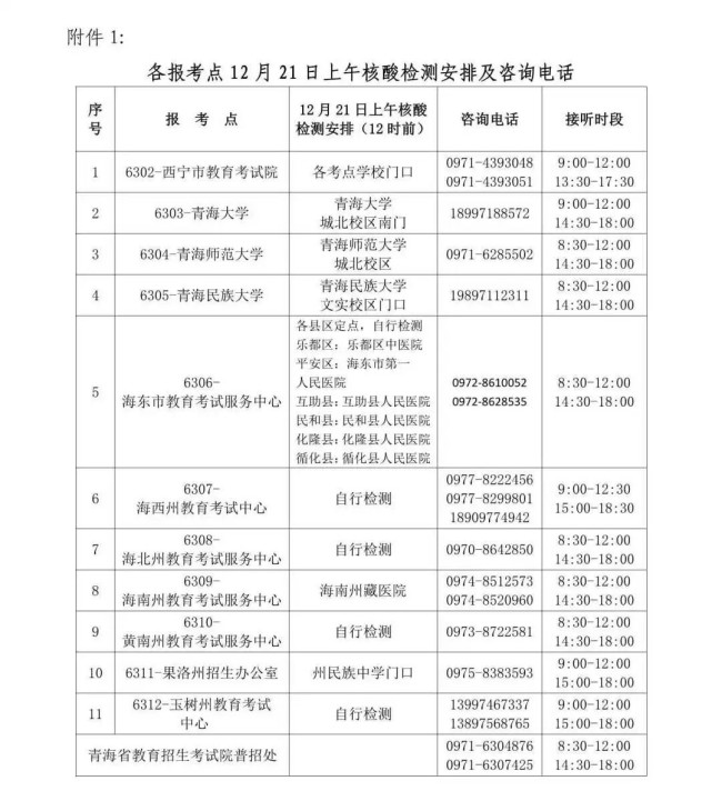 可持准考证到有关报考点安排的核酸采样点进行检测,也可自行到附近的采样点采样检测(核酸检测安排及咨询电话详见本公告附件1)