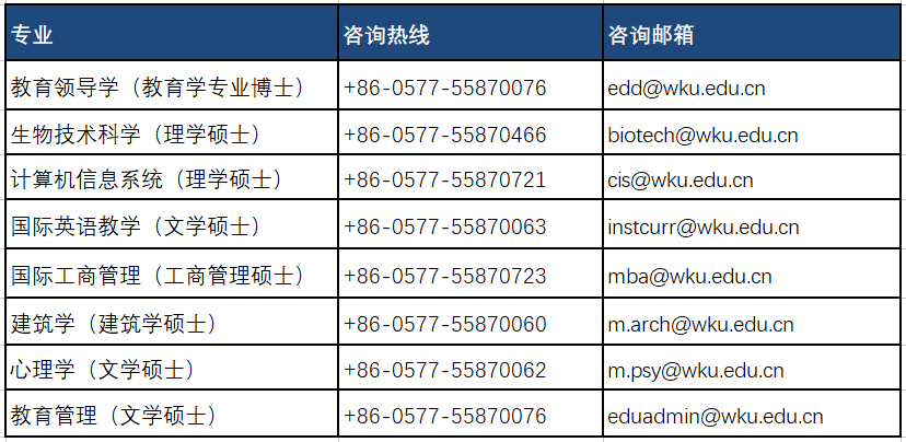 *各专业具体的入学要求,详见各专业网页信息(https://wku.edu.cn/zsjy/yjszs/yjszy/)。