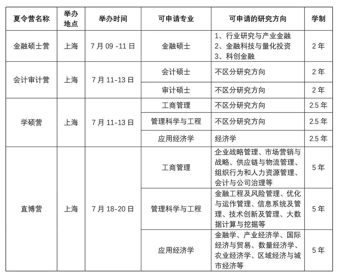 3、申请夏令营的学生,仅能申请金融硕士营、会计审计营、学硕营、直博营中的一个营,且仅能申请其中的一个专业或方向。