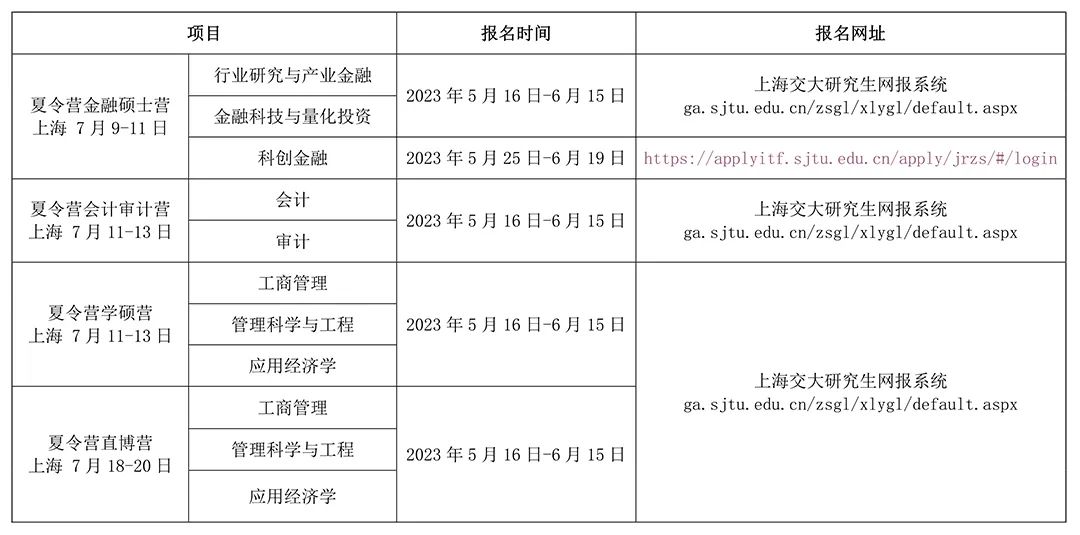 以上是关于“上海交通大学安泰经济与管理学院第十八届安泰优才夏令营网申通道开启”的全部内容,不同院校的夏令营具体安排也有所不同,大家要注意报名的截止时间,以免错过哦。更多考研资讯更新中,敬请关注。