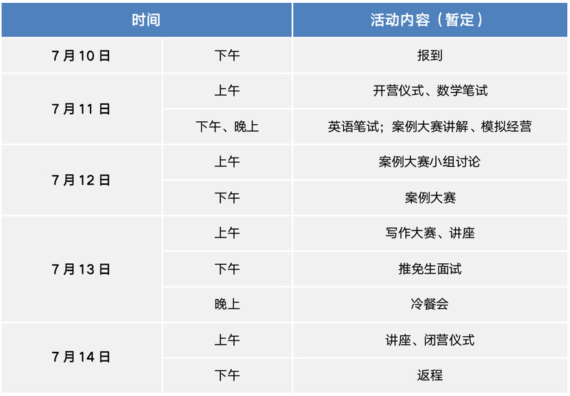 3.营员规定时间内未报到将视为自动放弃入营资格;报到后须按要求全程参加活动,无故缺席将取消营员资格。合格者将获颁上海财经大学会计学院“全国暑期夏令营”活动结业证书。