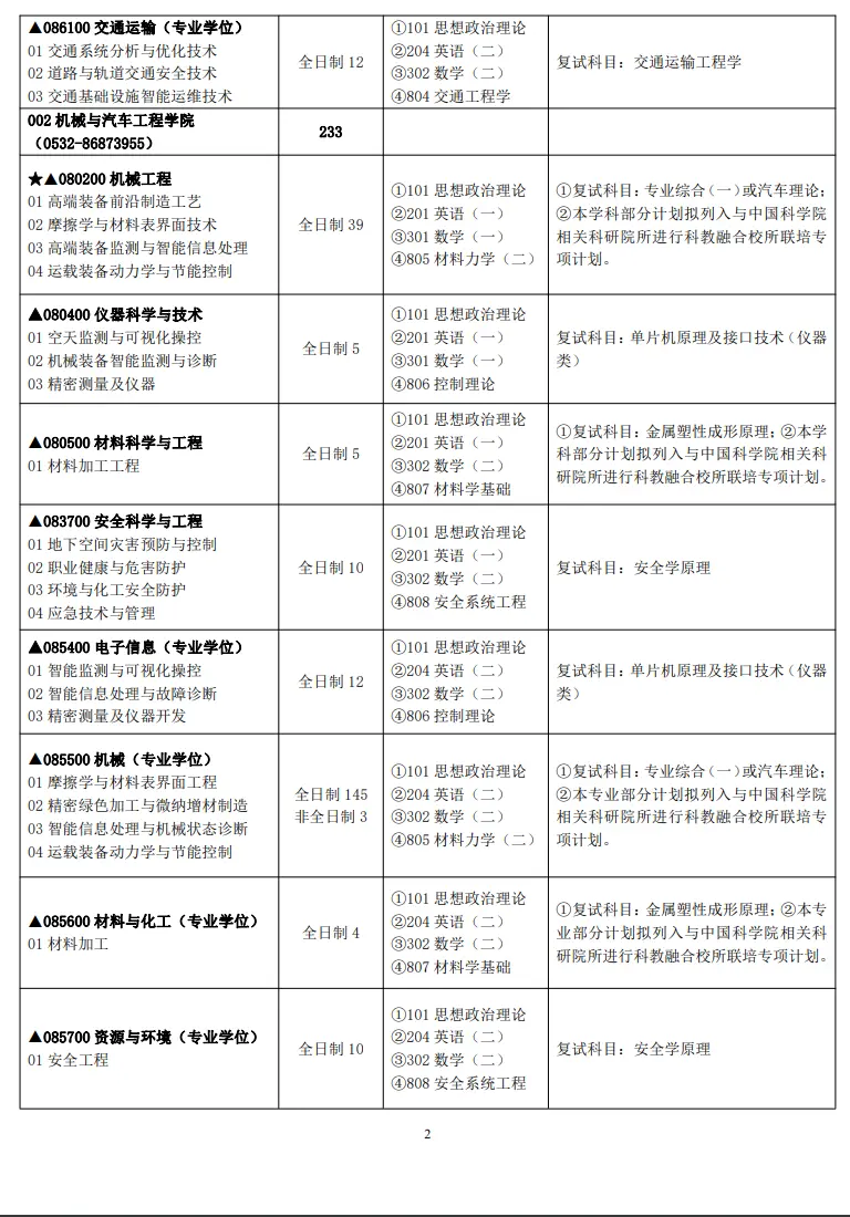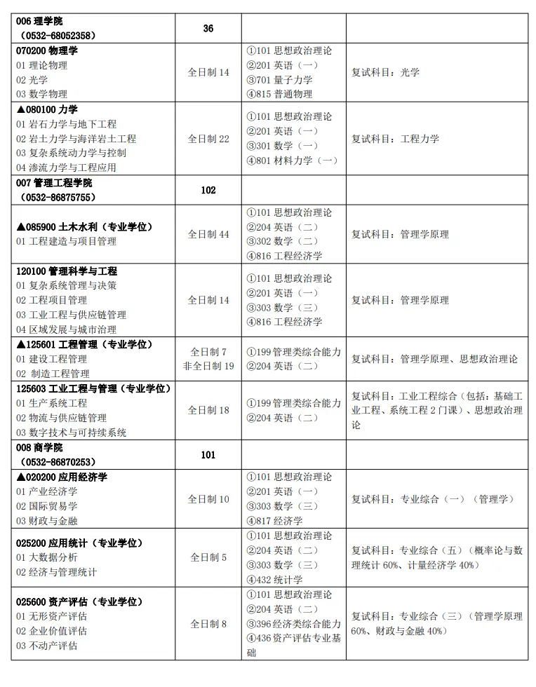 2024年青岛理工大学硕士研究生招生专业目录