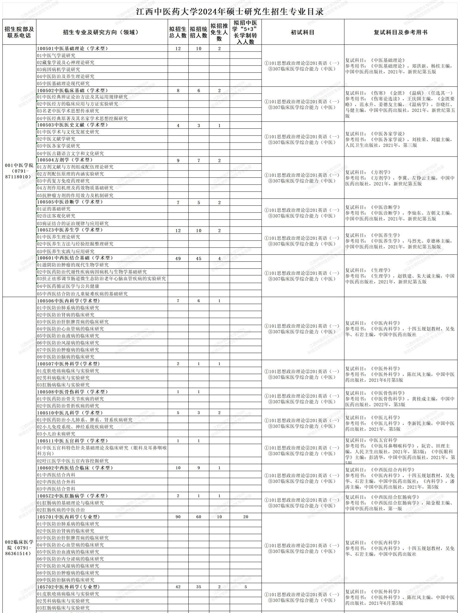 2024年江西中医药大学研究生招生专业目录详细列举了2024年江西中医药大学研究生招生专业、研究生方向、考试科目等。为报考2024年江西中医药大学研究生的同学提供参考。