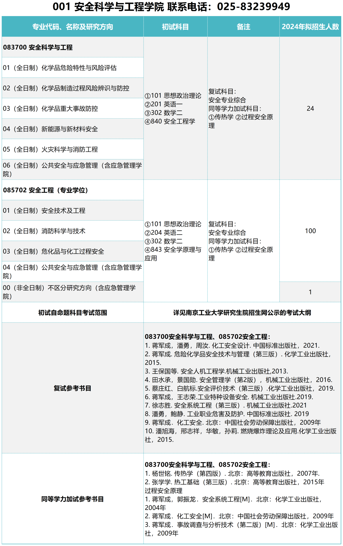 南京工业大学2024年安全科学与工程学院招生专业目录已公布!
