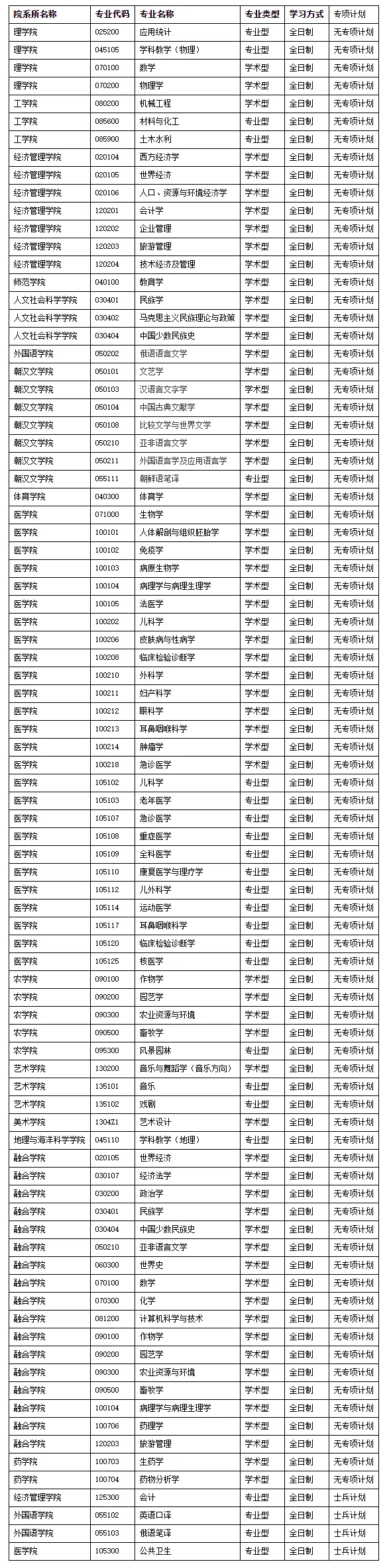 延边大学2023考研接收调剂的专业: