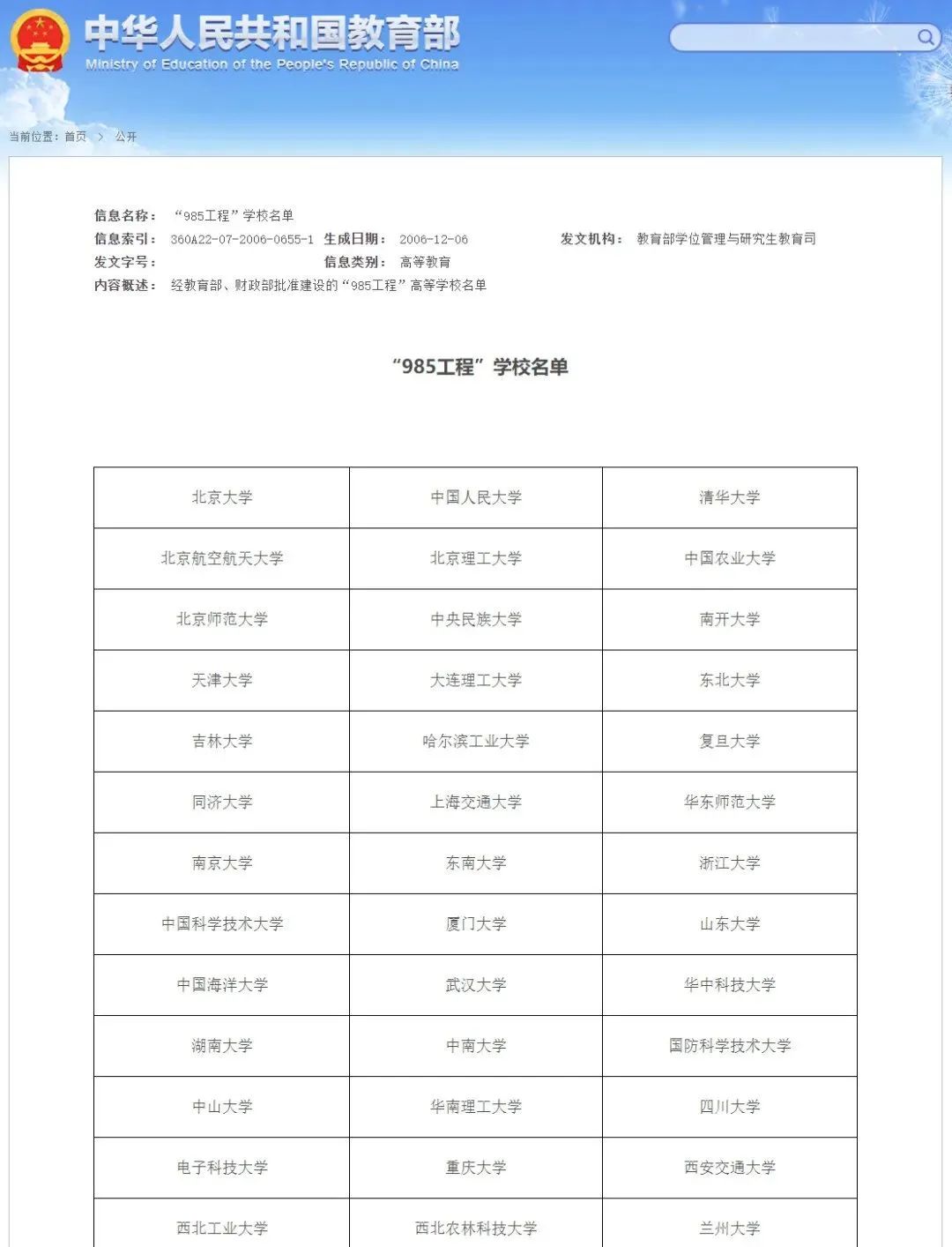 985工程,以建设若干所世界一流大学和一批国际知名的高水平研究型大学为目标。