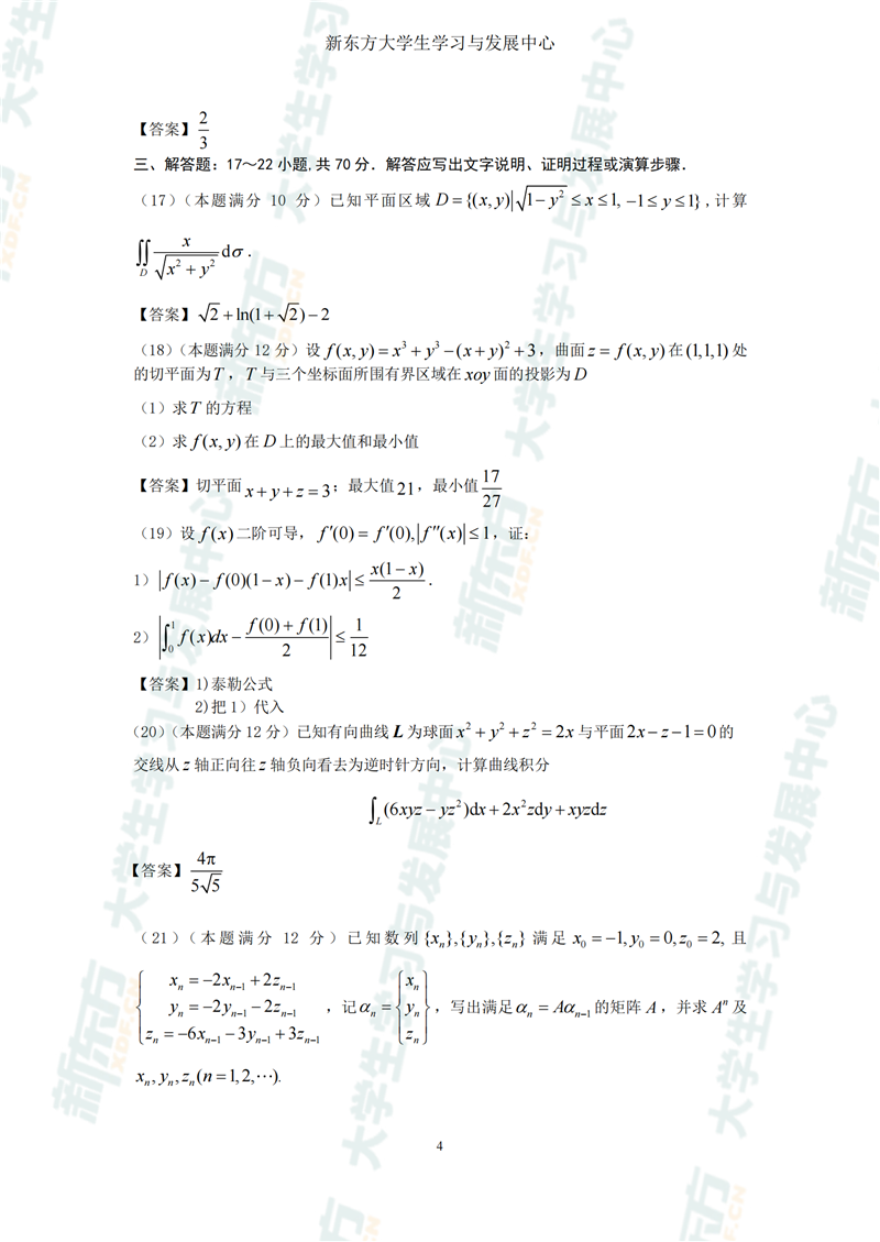 以上是新东方为同学们搜集的2024数学一考研真题及答案解析。如果大家想要进一步了解,可以随时联系在线老师进行咨询。