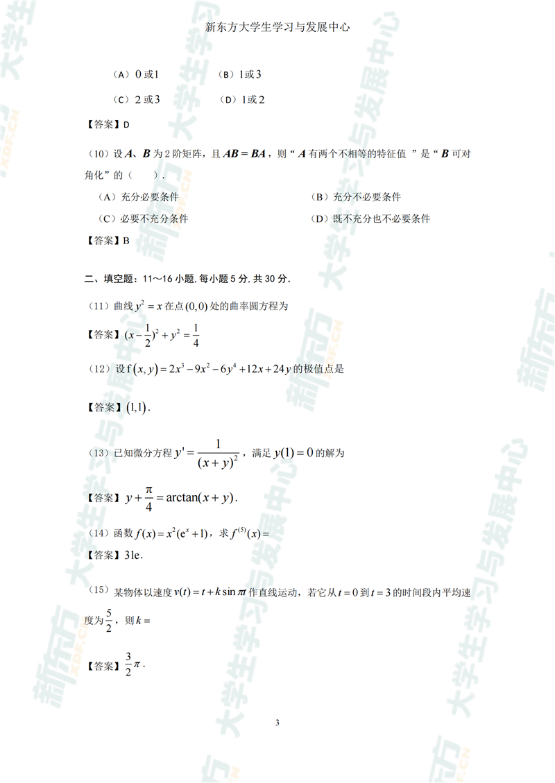 考研真题可以帮助考生在备考过程中了解考试内容和题型、把握考试难度和命题规律、检测学习效果和水平,从而提高应试的方法和经验。因此,新东方为同学们提供了2024数学二考研真题及答案解析,希望可以帮助到大家。
