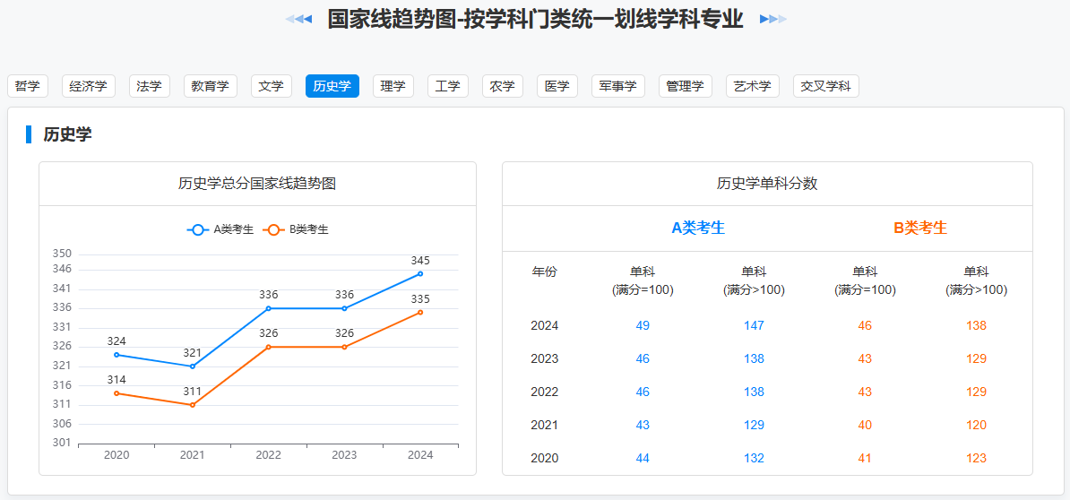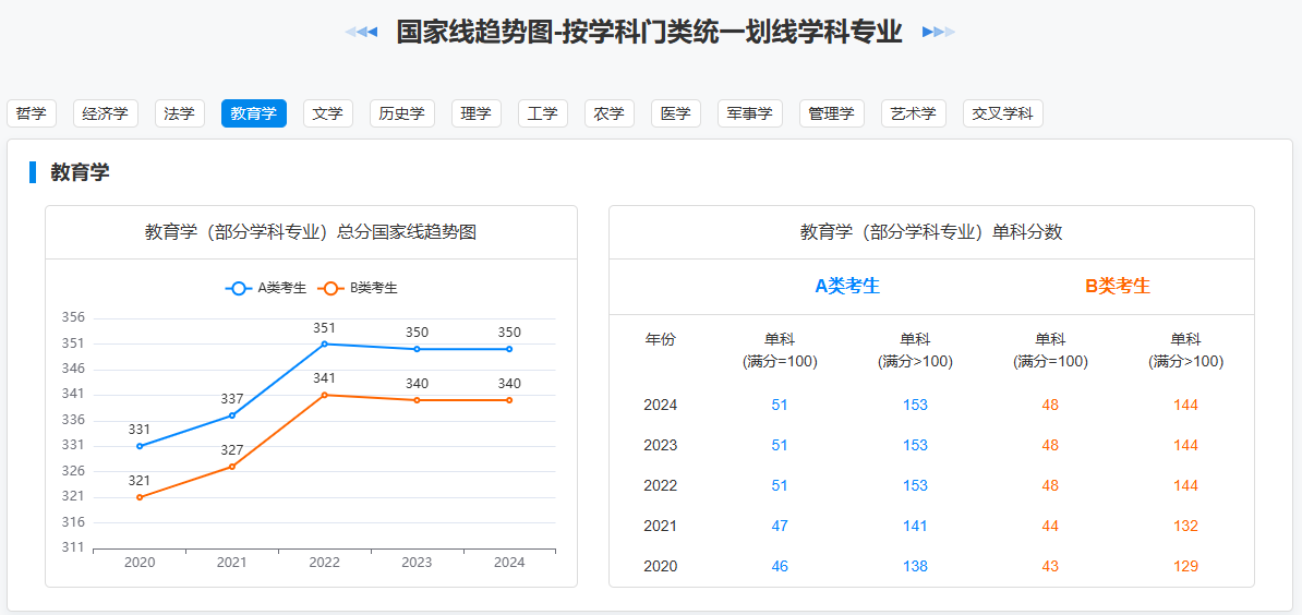 以上是近五年教育学、历史学、文学研考国家线及趋势图以供参考。