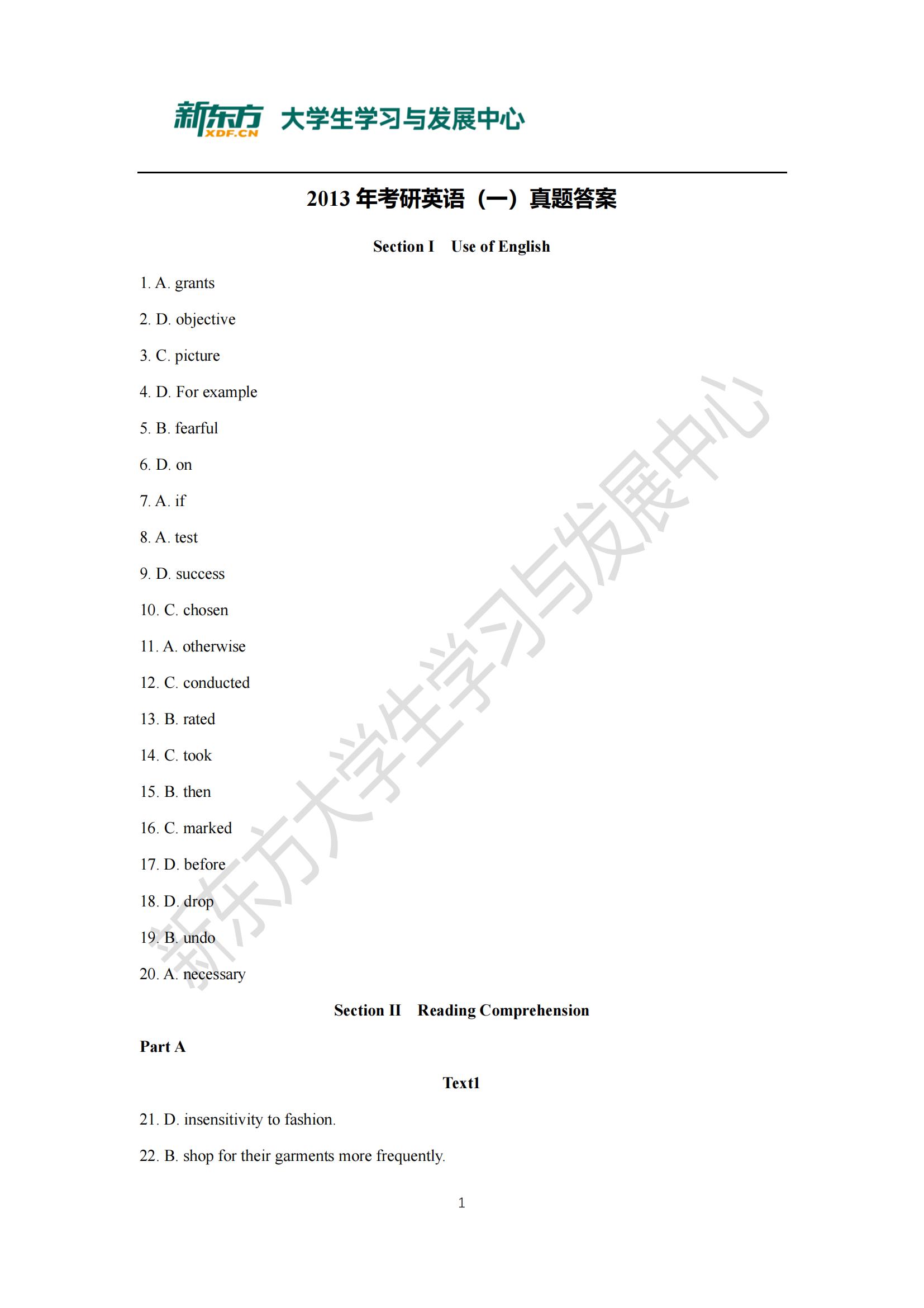【历年考研真题】2013年考研英语(一)真题及答案