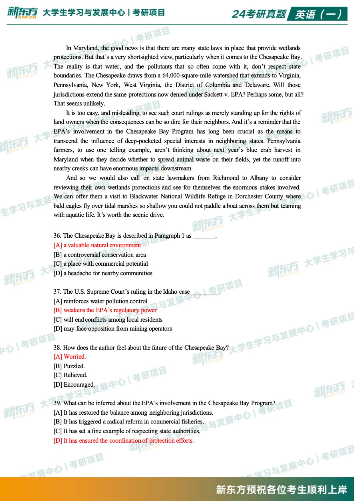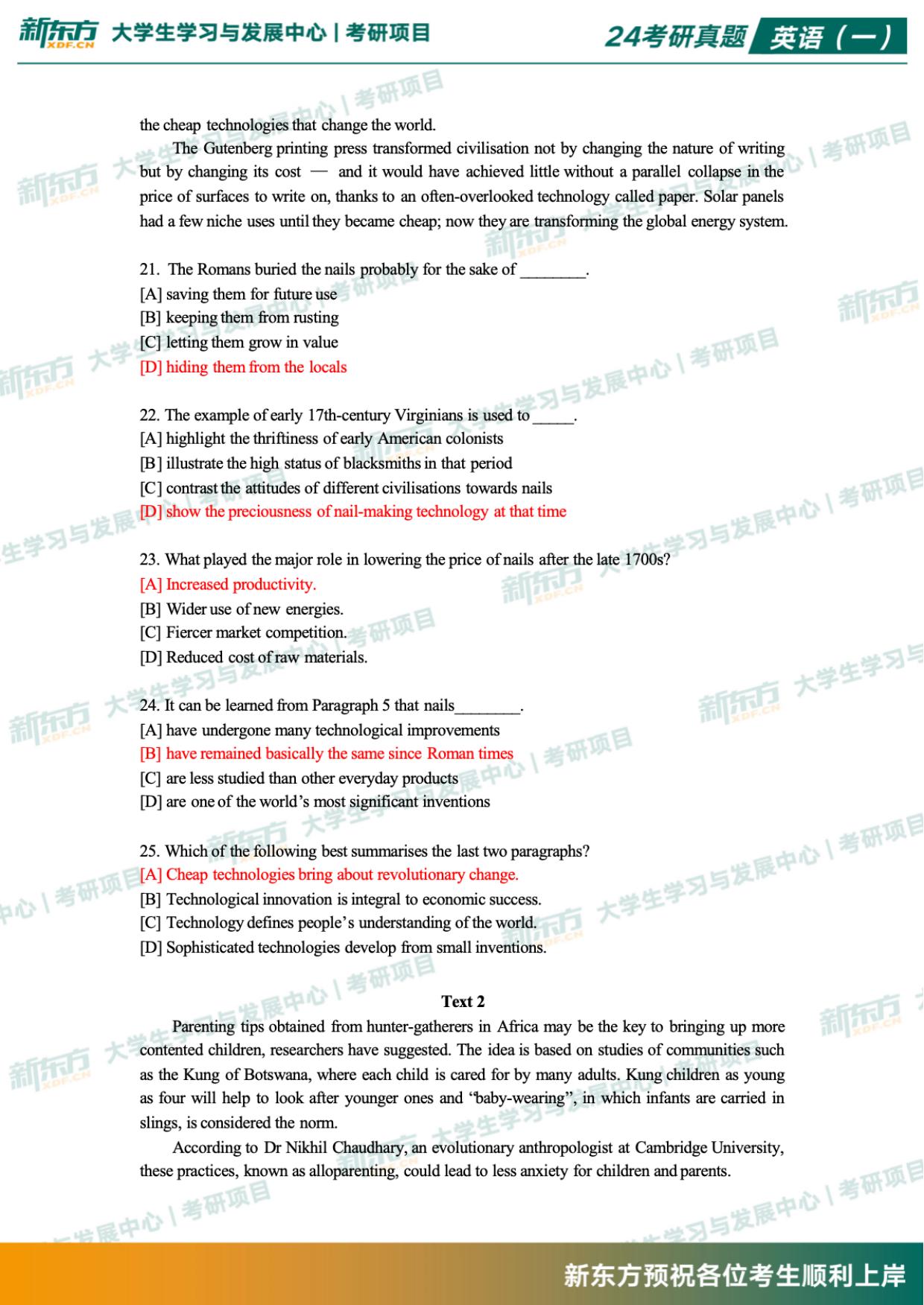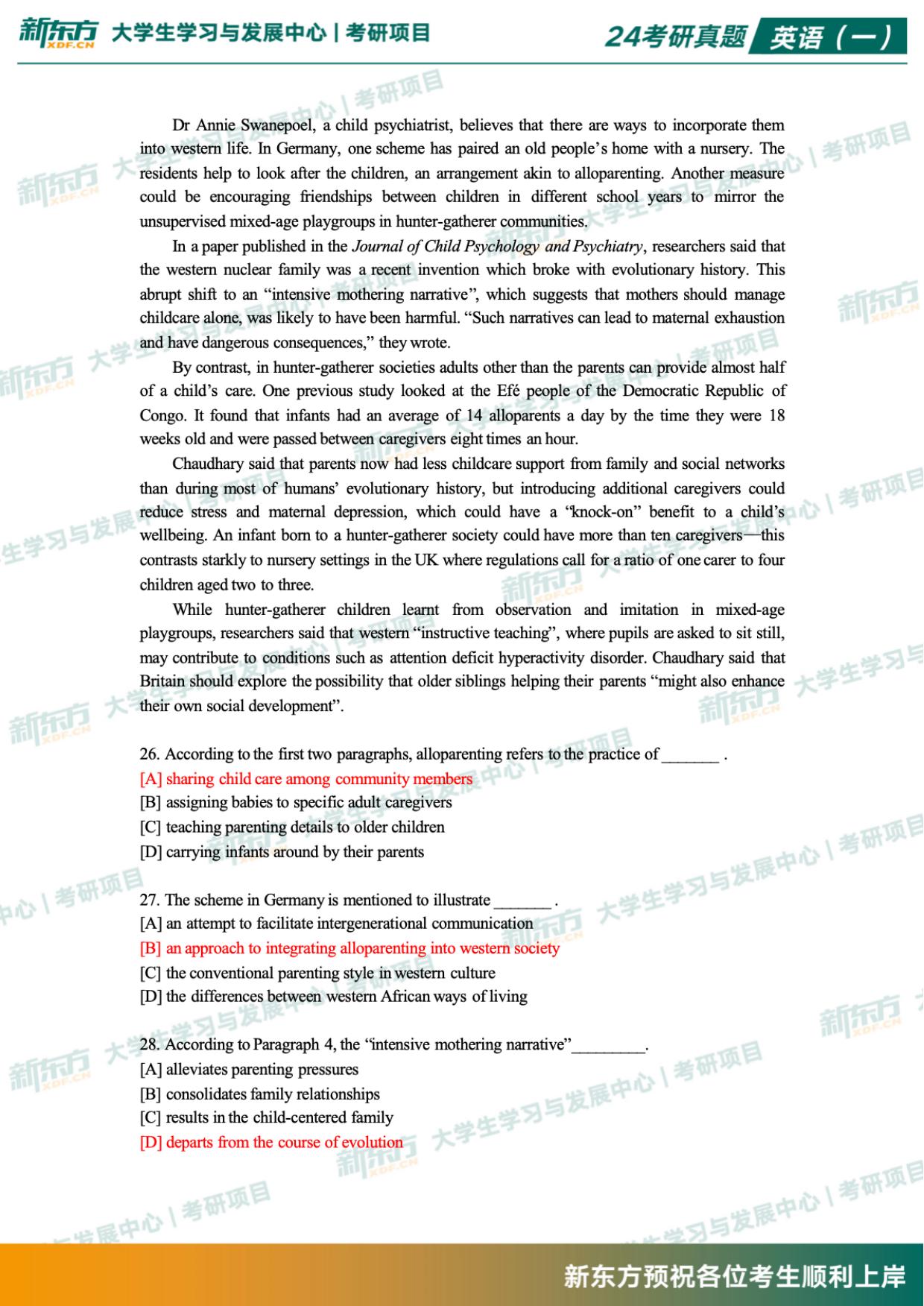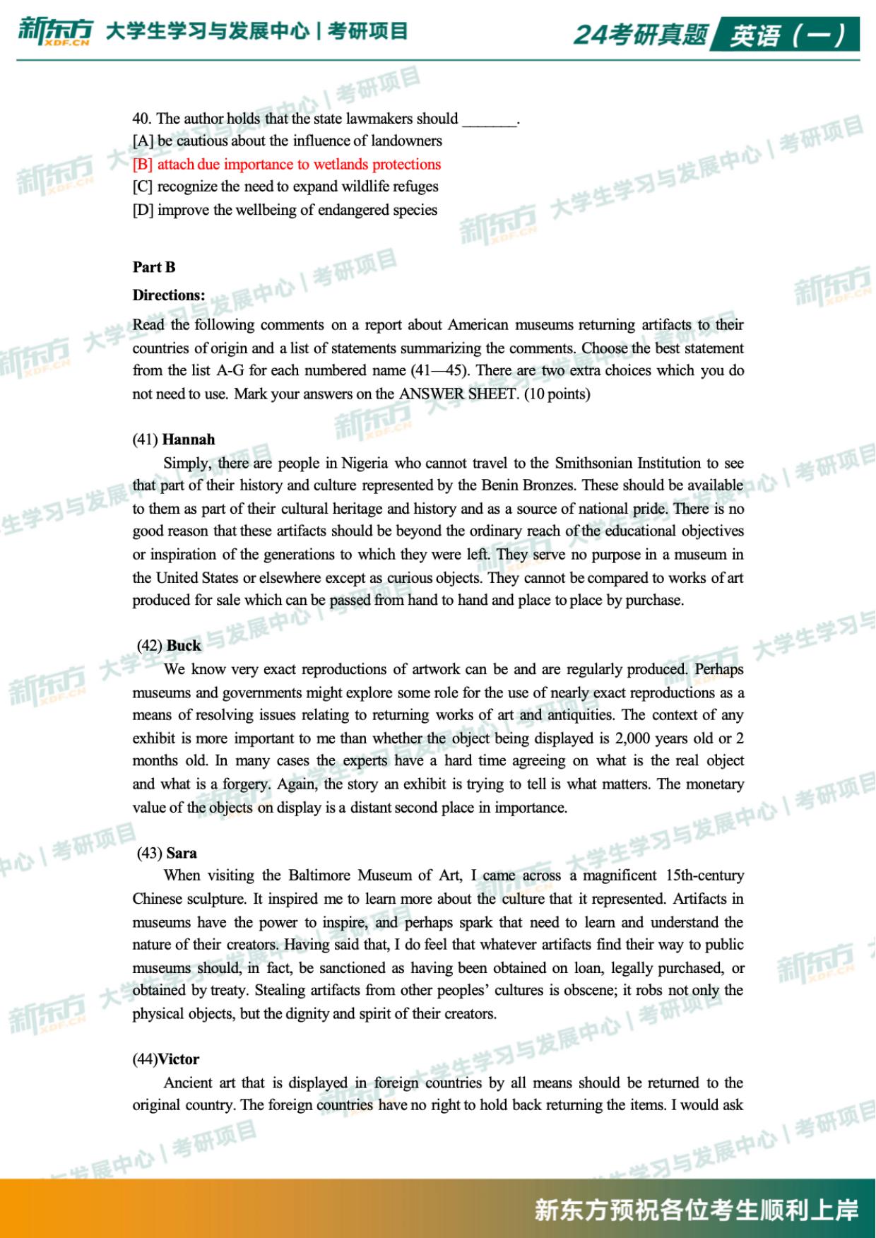 真题对于每位考研党来说是个非常重要的学习资料,多刷几遍真题能够帮助同学们查漏补缺、熟悉题型、培养做题习惯等。因此,浙江新东方在此为同学们提供了2024年考研英语(一)真题及答案,希望能够帮助大家更好的准备考研英语,通过不断的练习与总结,掌握重点,攻克难点。更多资料获取可点击新东方考研网联系在线老师进行咨询。