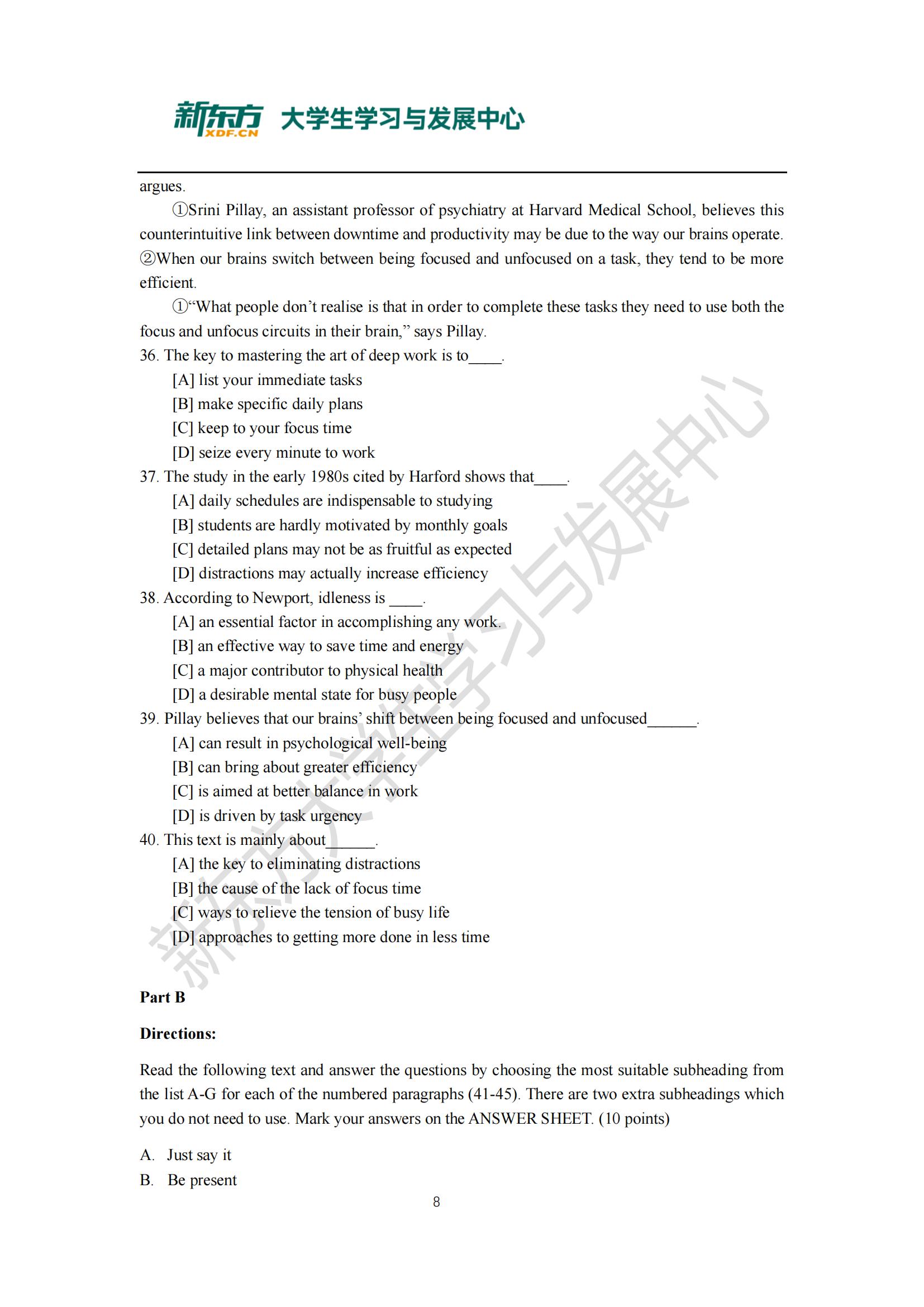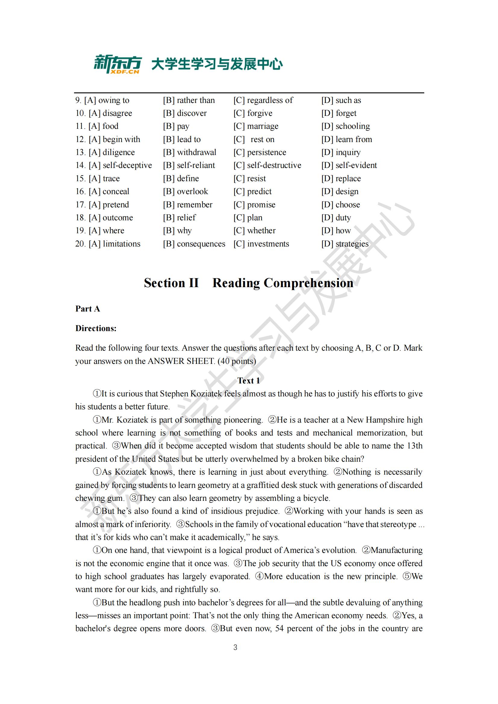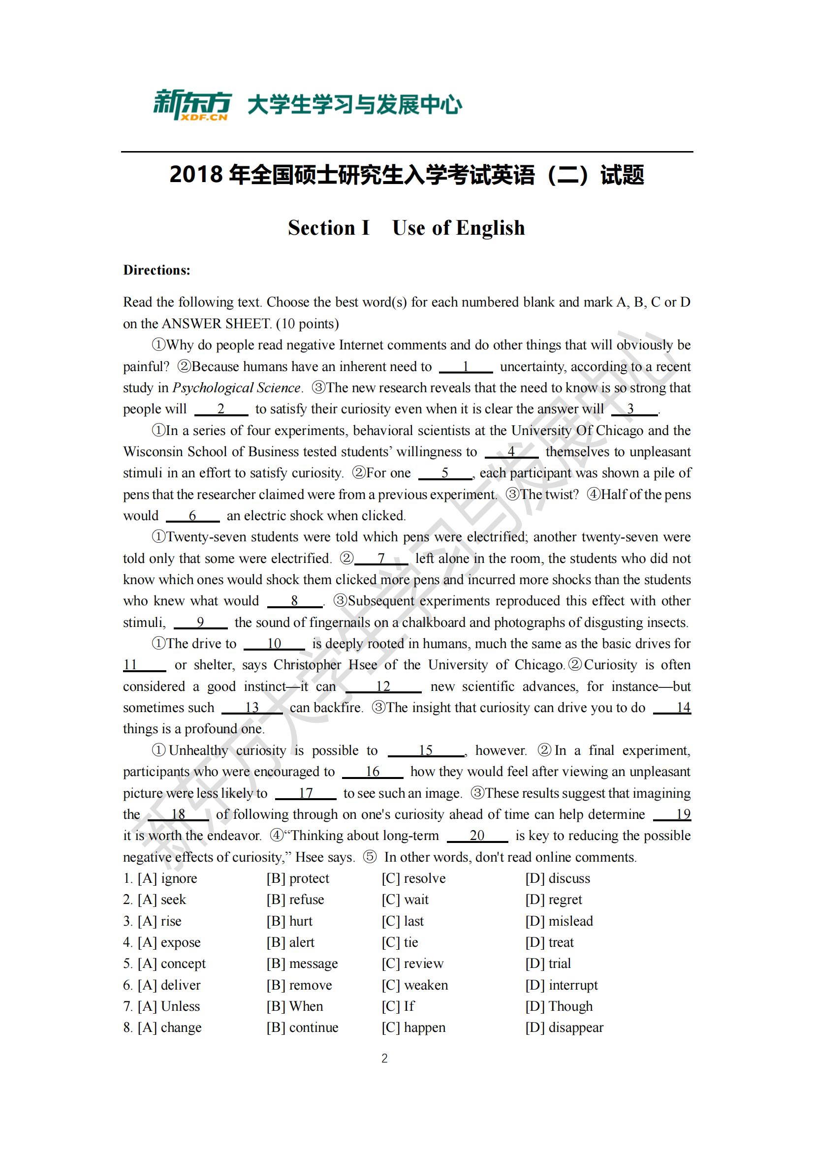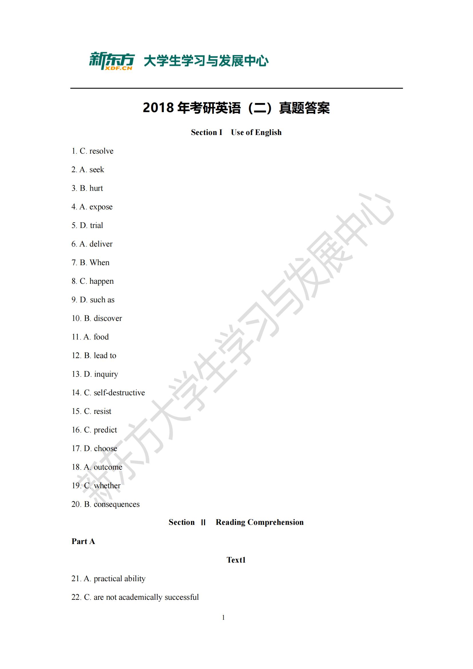 真题对于每位考研党来说是个非常重要的学习资料,多刷几遍真题能够帮助同学们查漏补缺、熟悉题型、培养做题习惯等。因此,浙江新东方在此为同学们提供了2018年考研英语(二)真题及答案,希望能够帮助大家更好的准备考研英语,通过不断的练习与总结,掌握重点,攻克难点。更多资料获取可点击新东方考研网联系在线老师进行咨询。