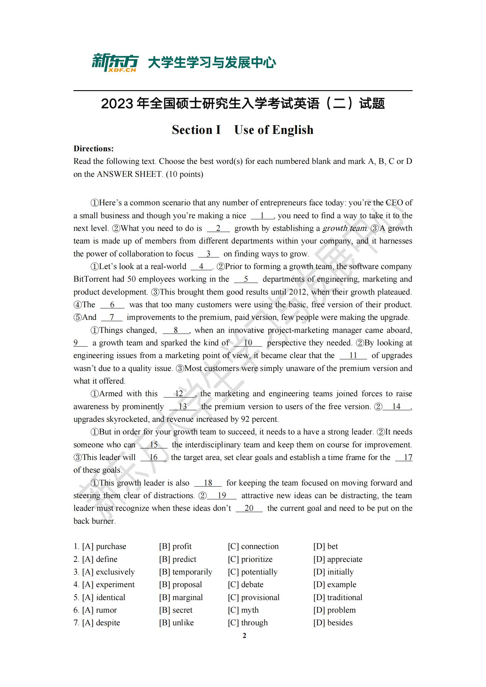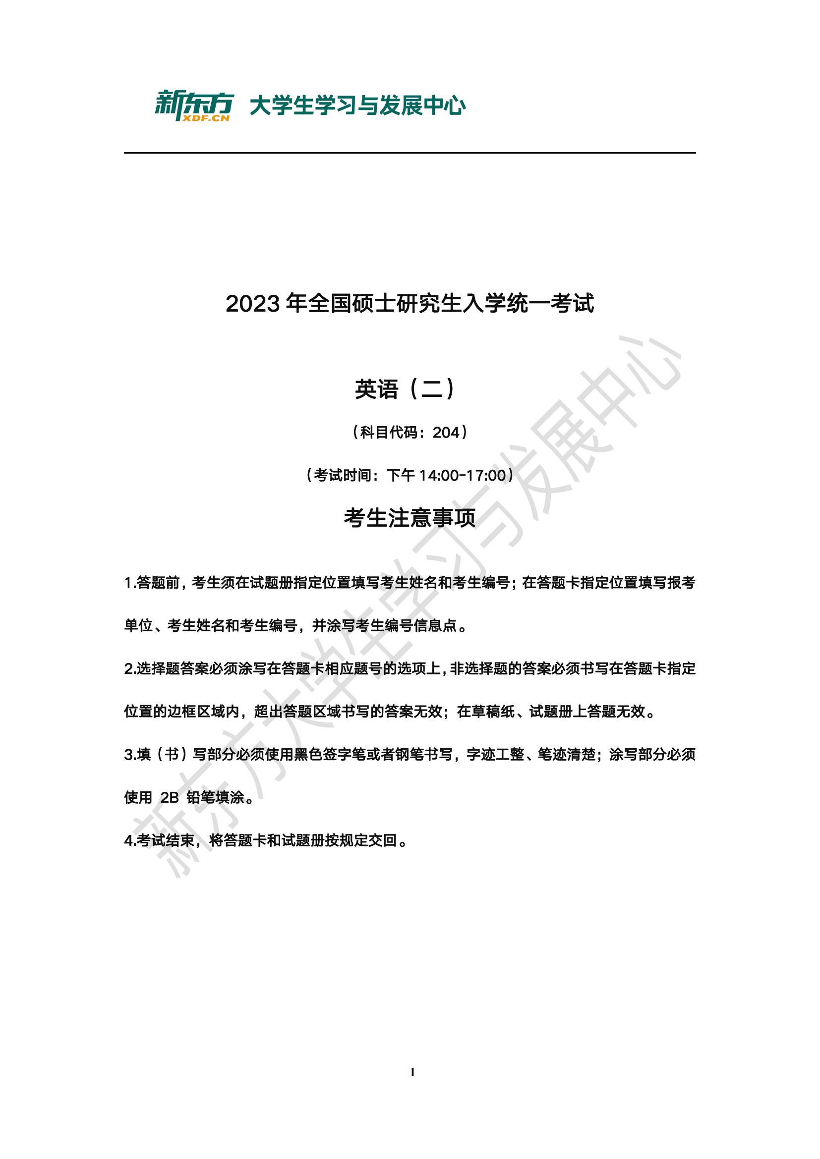 【历年考研真题】2023年考研英语(二)真题及答案
