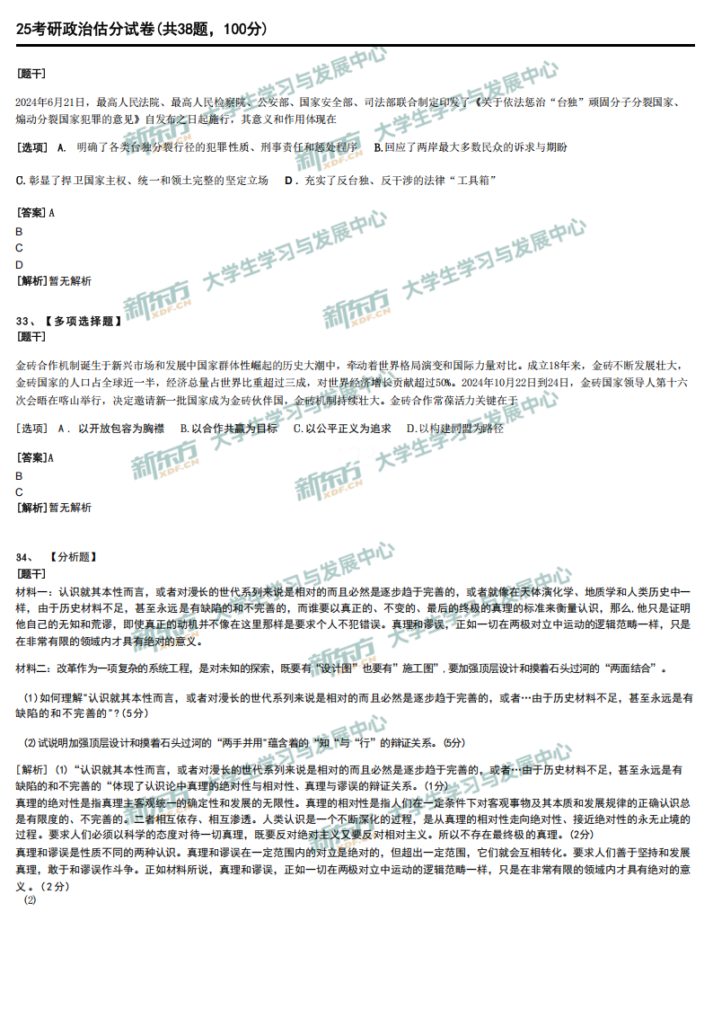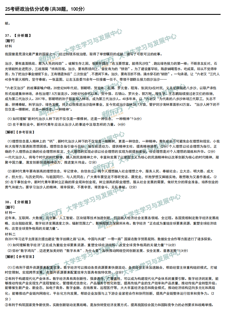 2025年考研政治初试已经结束,新东方考研网小编为您带来《2025年考研政治分析题试题下载(新东方版)》,供大家学习与参考~也供参加2026年考研的同学查阅练习,作为思想政治理论备考资料。另外,我们还将第一时间为考生提供考研公共课真题答案及答案解析内容,同时新东方考研教师将为考生提供视频直播解析——直播入口|2025年考研真题答案专区~也为大家提供了2025考研估分入口,欢迎广大考生收藏转发给更多需要的考友们。