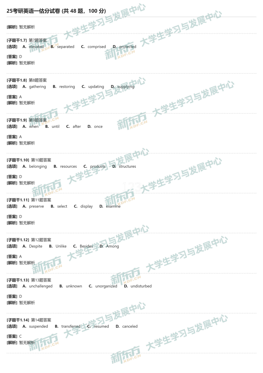 以上是新东方考研网为大家带来的《2025年考研英语一试题及答案解析完整版(网友版)》,新东方考研网为大家提供历年考研英语试题及答案解析,还包括自研模考试卷、冲刺题、阶段性章节练习题、常考知识点汇总等内容。助力考生在考前能够找到更高一些质量的题目用来练习,提高备考效率。