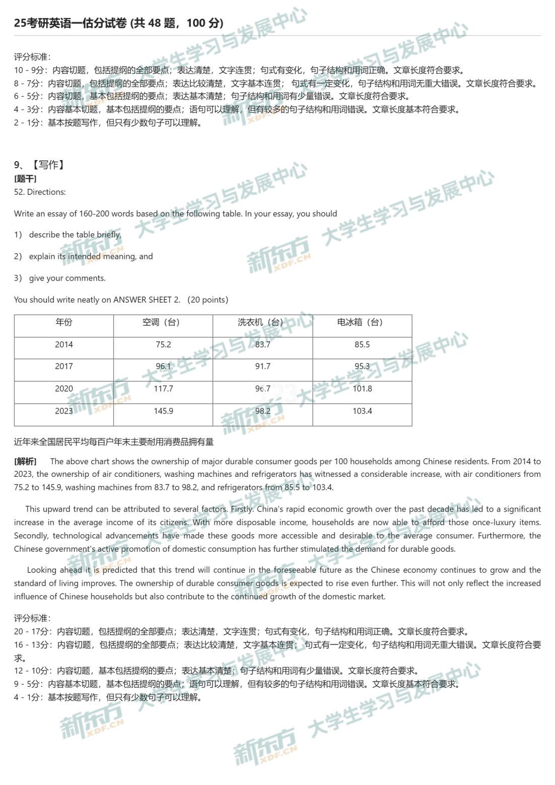 以上是新东方考研网为大家带来的《2025年考研英语一大作文试题及范文》,新东方考研网为大家提供历年考研英语试题及答案解析,还包括自研模考试卷、冲刺题、阶段性章节练习题、常考知识点汇总等内容。助力考生在考前能够找到更高一些质量的题目用来练习,提高备考效率。