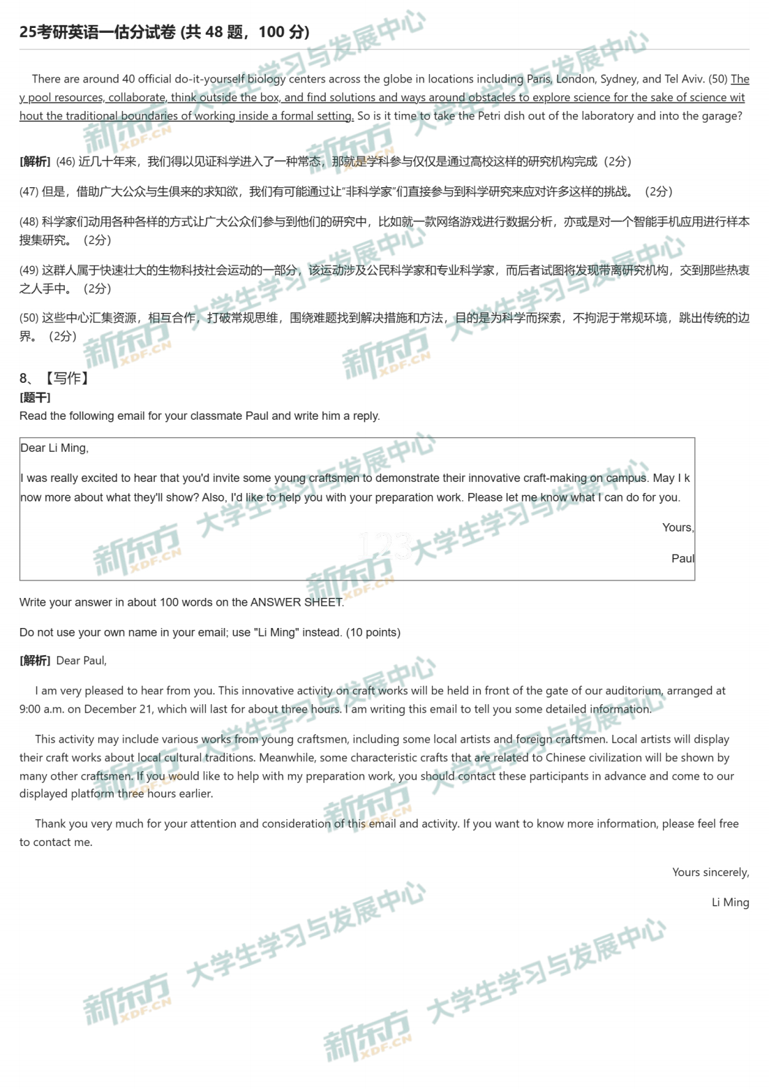 以上是新东方考研网为大家带来的《2025年考研英语一小作文试题及范文》,新东方考研网为大家提供历年考研英语试题及答案解析,还包括自研模考试卷、冲刺题、阶段性章节练习题、常考知识点汇总等内容。助力考生在考前能够找到更高一些质量的题目用来练习,提高备考效率。
