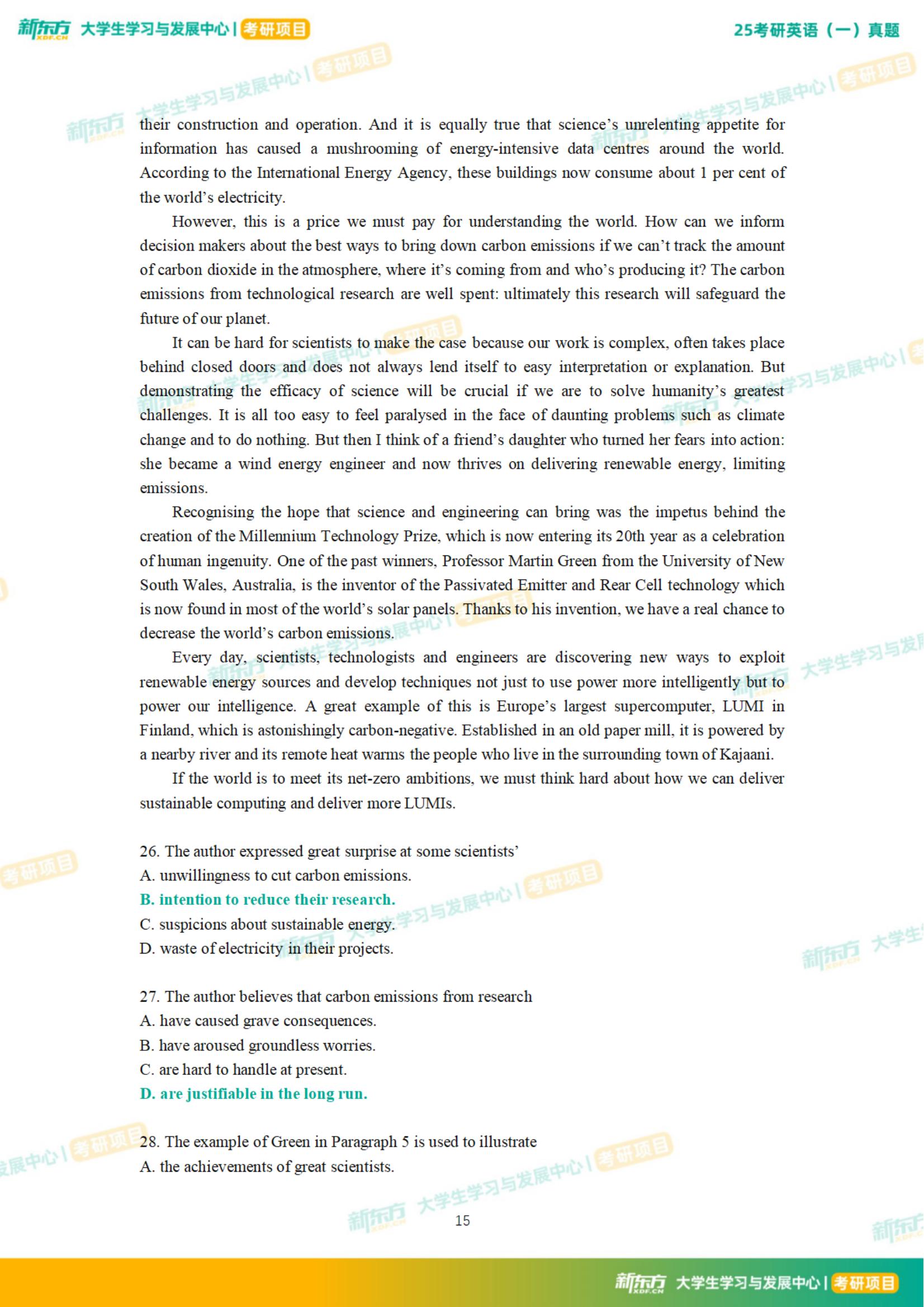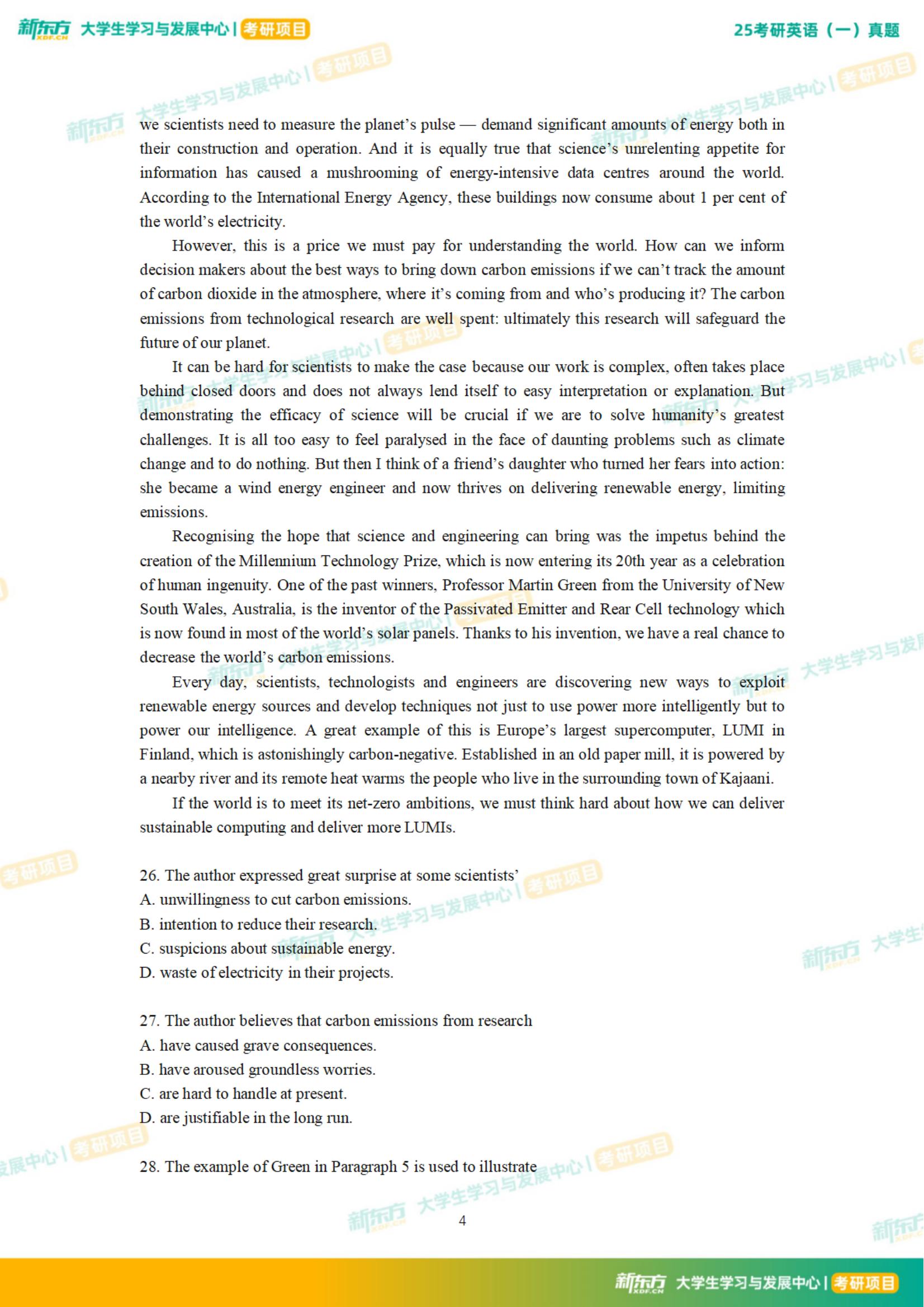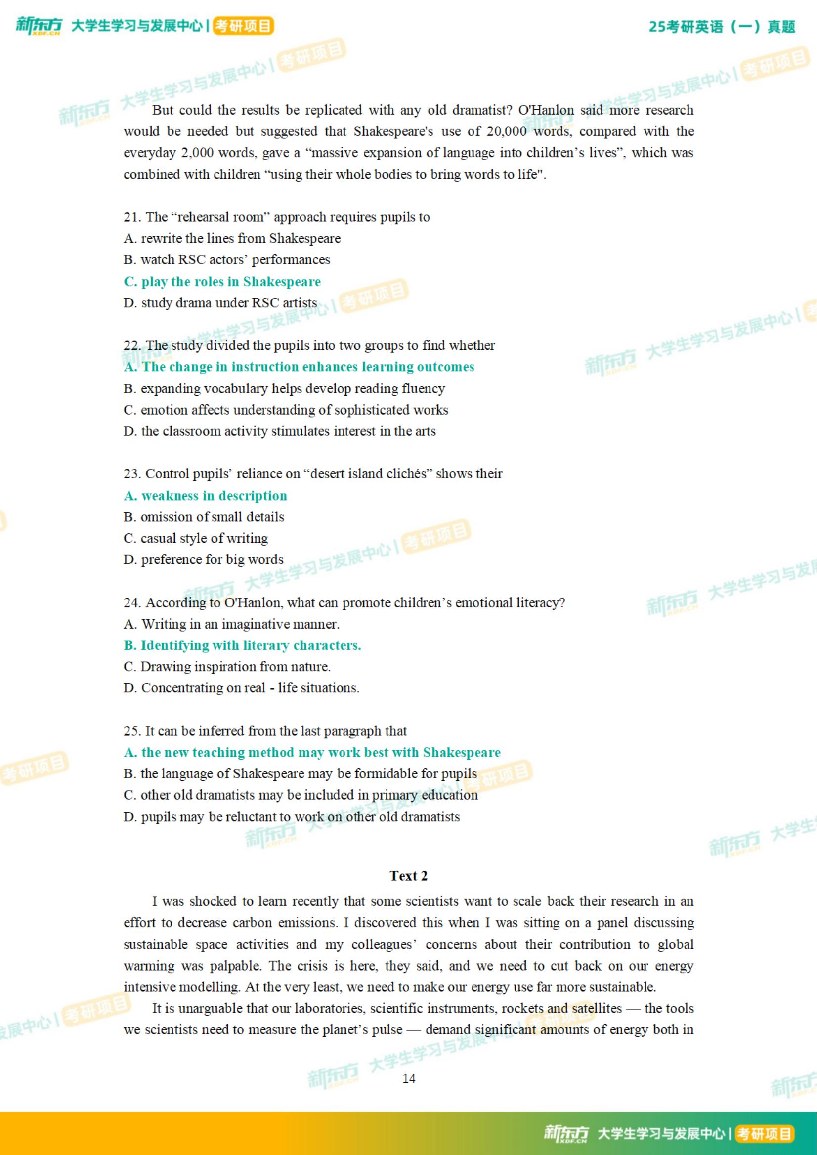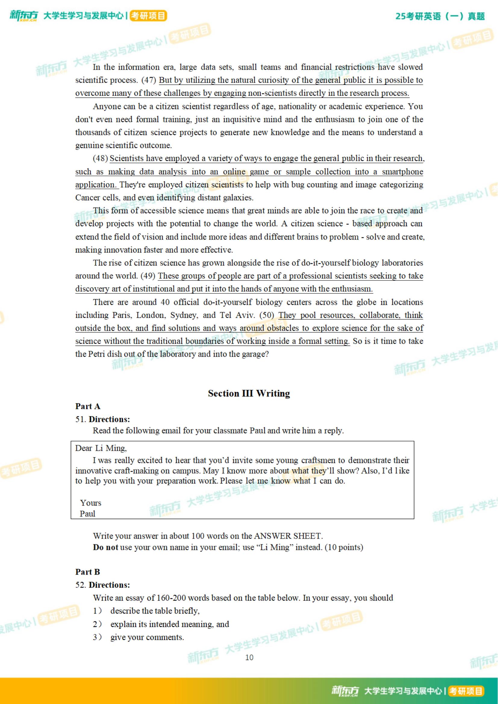 真题对于每位考研党来说是个非常重要的学习资料,多刷几遍真题能够帮助同学们查漏补缺、熟悉题型、培养做题习惯等。因此,浙江新东方在此为同学们提供了2025年考研英语(一)真题及答案,希望能够帮助大家更好的准备考研英语,通过不断的练习与总结,掌握重点,攻克难点。更多资料获取可点击新东方考研网联系在线老师进行咨询。