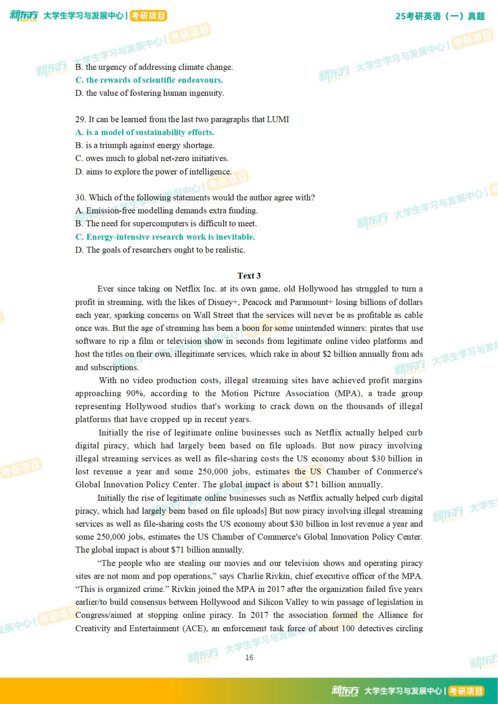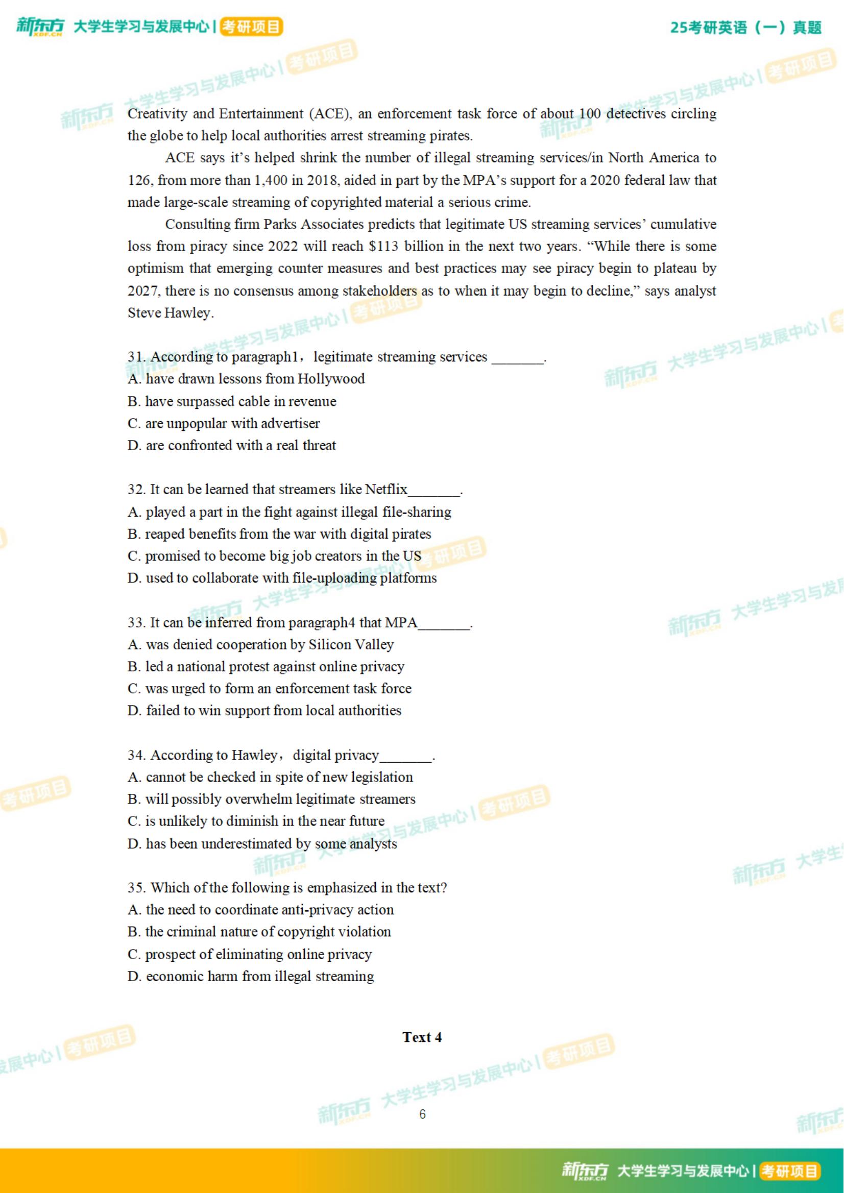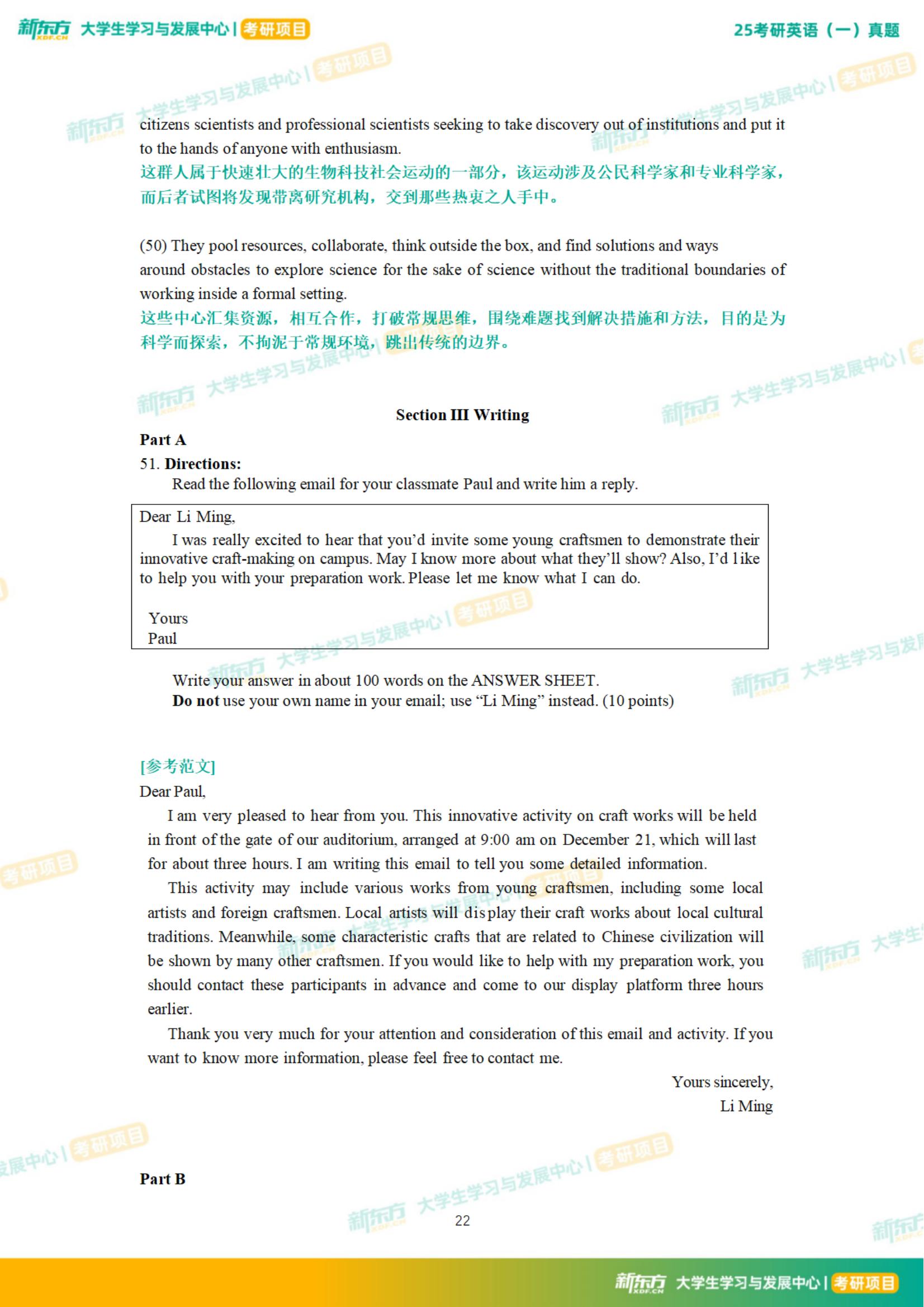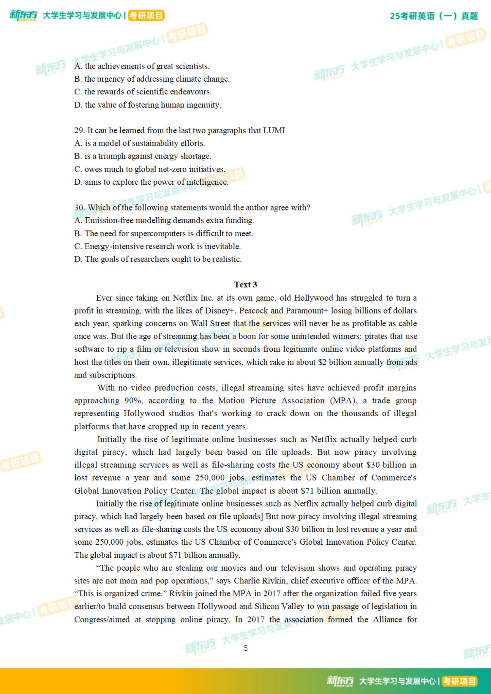 真题对于每位考研党来说是个非常重要的学习资料,多刷几遍真题能够帮助同学们查漏补缺、熟悉题型、培养做题习惯等。因此,浙江新东方在此为同学们提供了2025年考研英语(一)真题及答案,希望能够帮助大家更好的准备考研英语,通过不断的练习与总结,掌握重点,攻克难点。更多资料获取可点击新东方考研网联系在线老师进行咨询。
