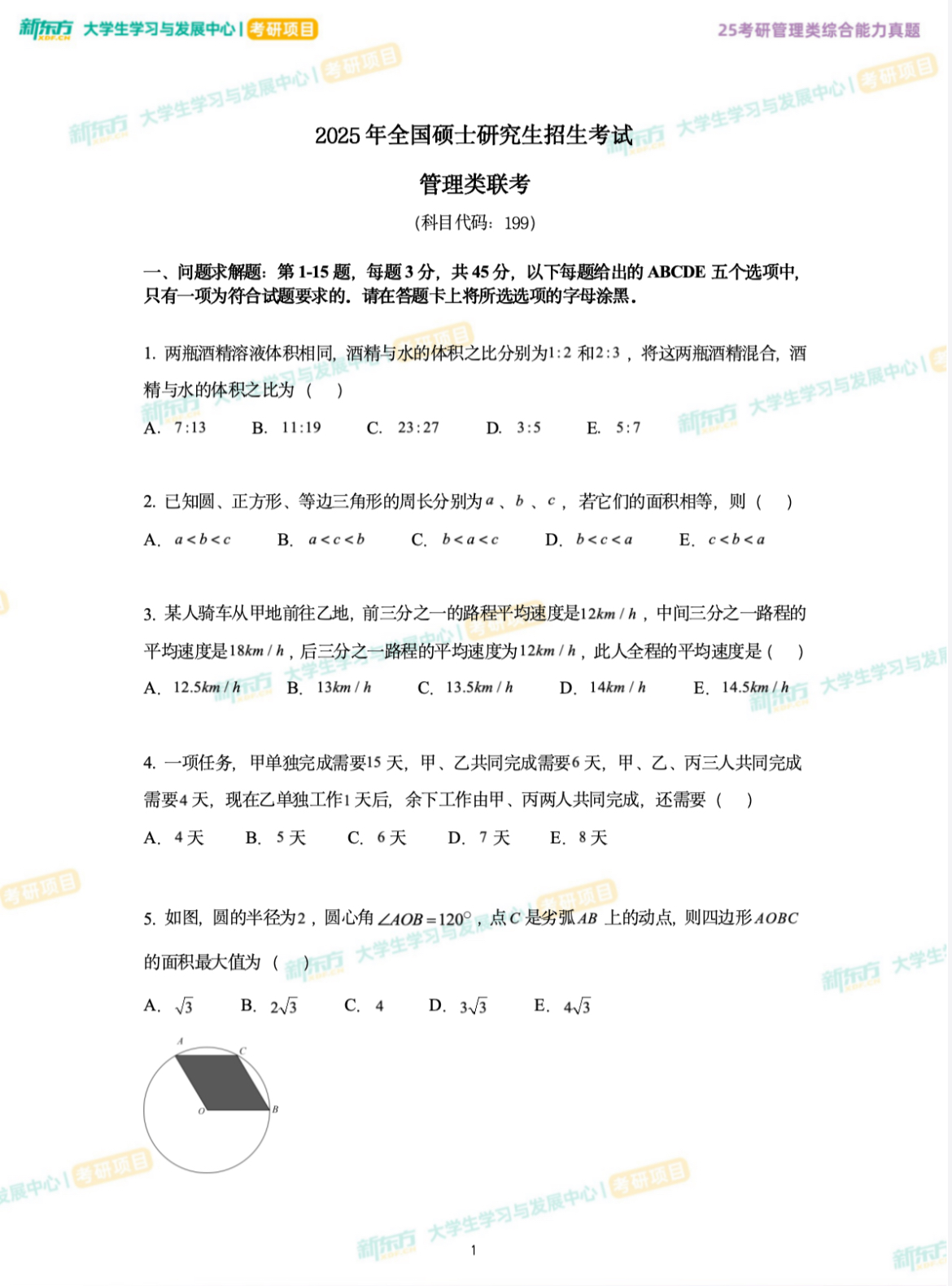 25考研已经结束,新东考研小编为您带来《2025年考研199管理类联考最新真题》,供大家学习与参考,帮助25考研学生还原考研真题,完成估分~另外,我们还将为同学们带来25考研199管综真题答案及解析的pdf版、图片版、与纯文字版,点击北京新东方考研网找小编领取吧!