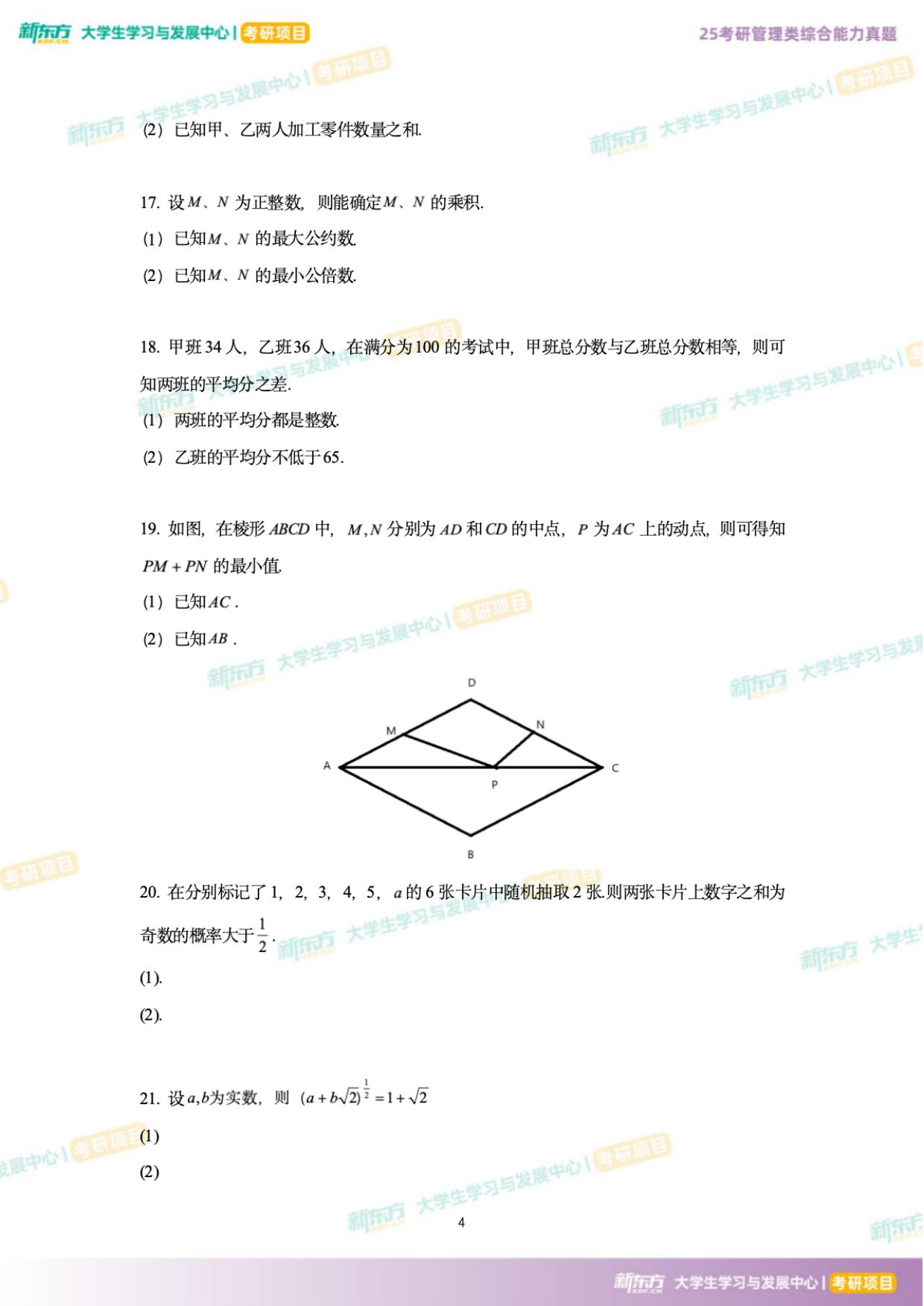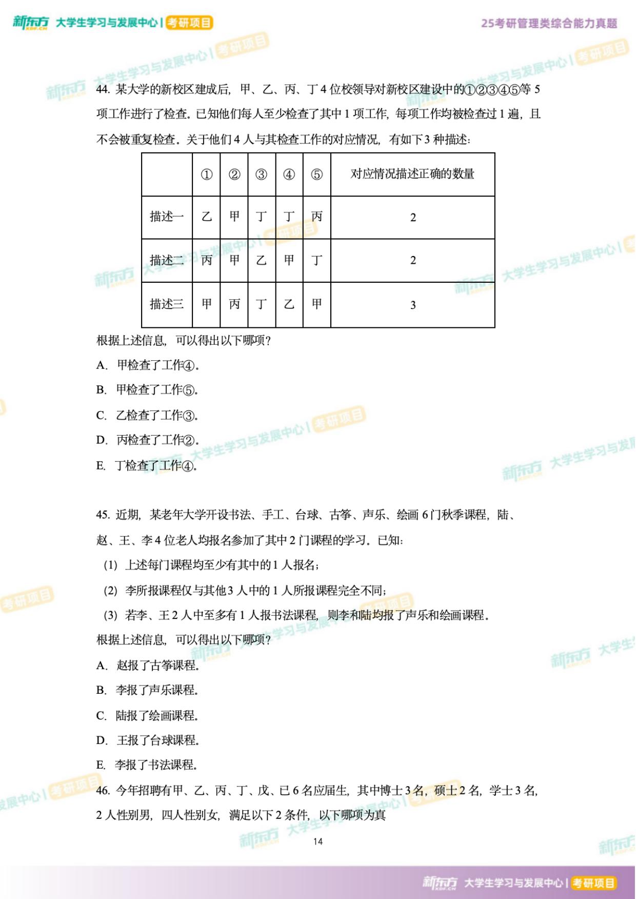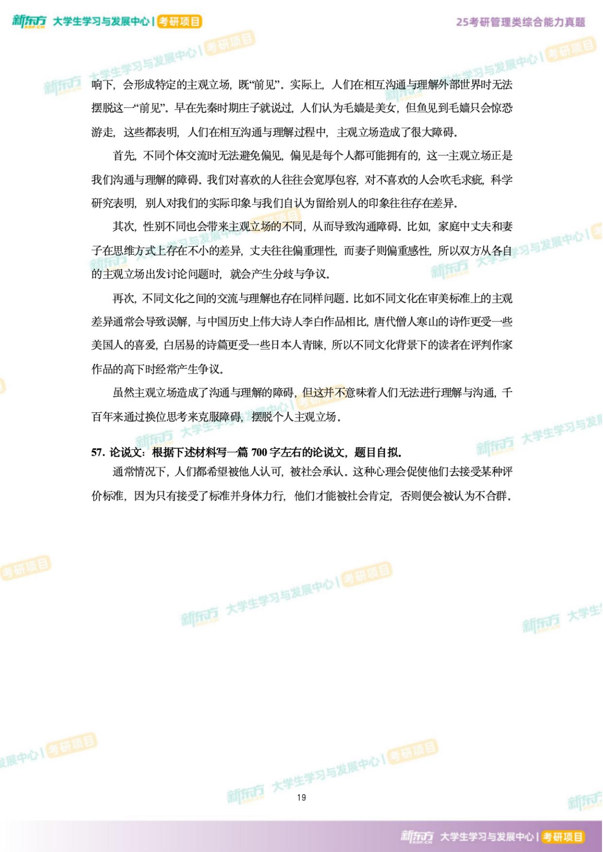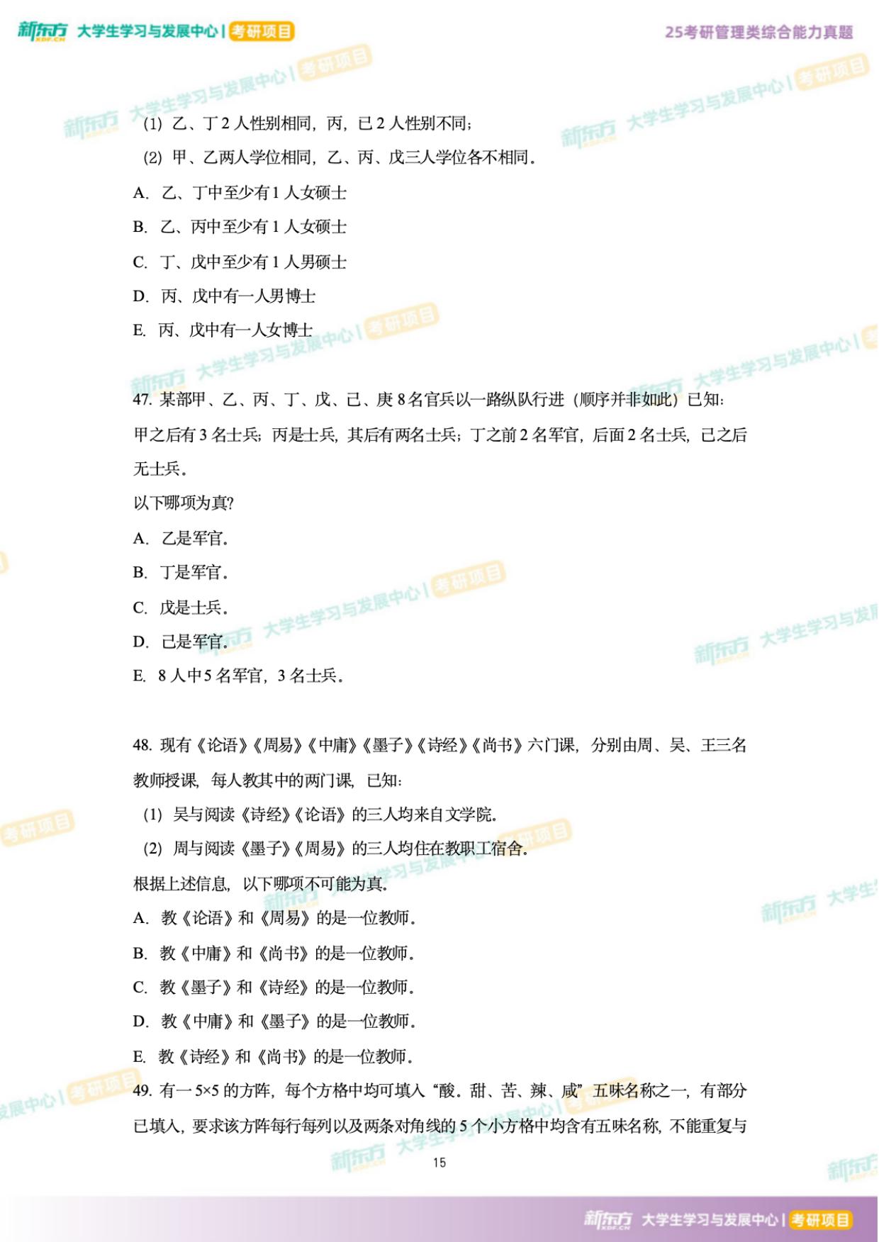 真题对于每位考研党来说是个非常重要的学习资料,多刷几遍真题能够帮助同学们查漏补缺、熟悉题型、培养做题习惯等。因此,浙江新东方在此为同学们提供了2025年考研199管综真题及答案,希望能够帮助大家更好的准备考研英语,通过不断的练习与总结,掌握重点,攻克难点。更多资料获取可点击新东方考研网联系在线老师进行咨询。