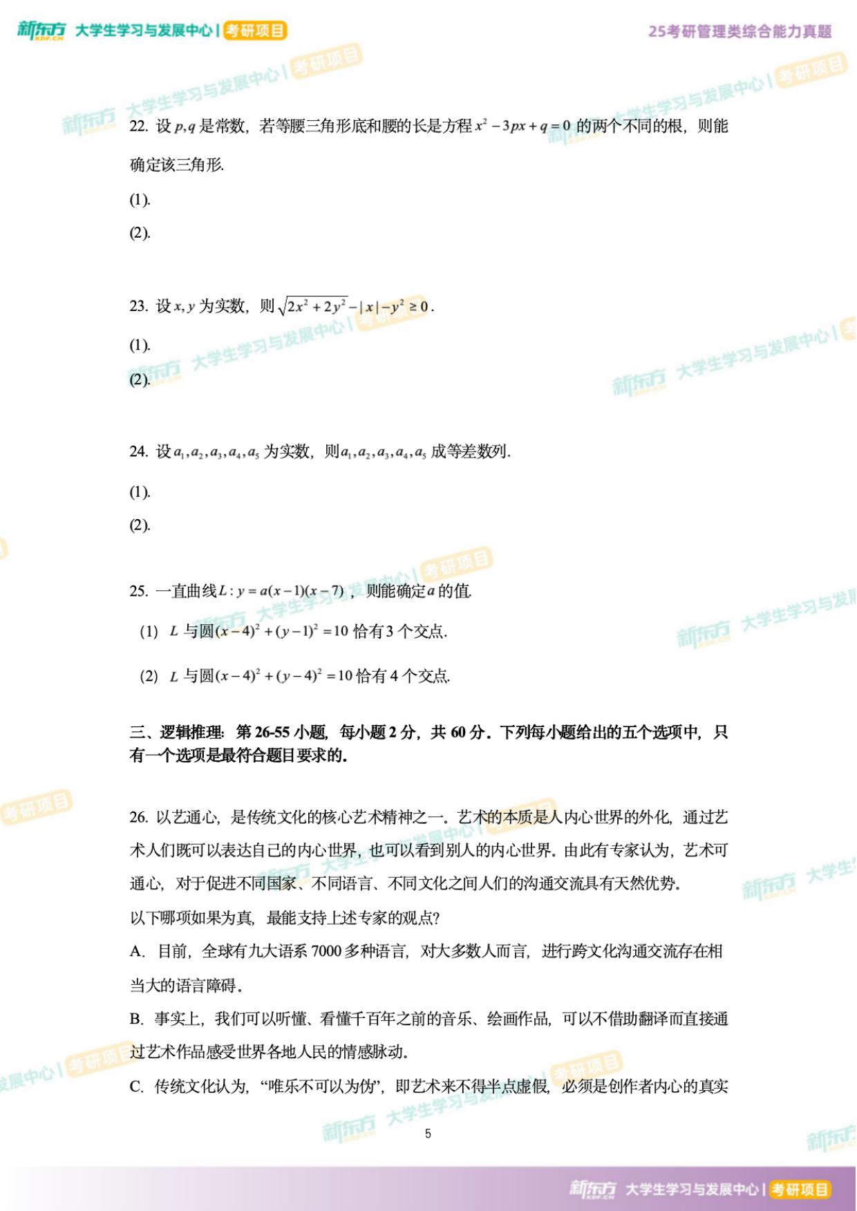 【当年考研真题】2025年考研199管综真题及答案