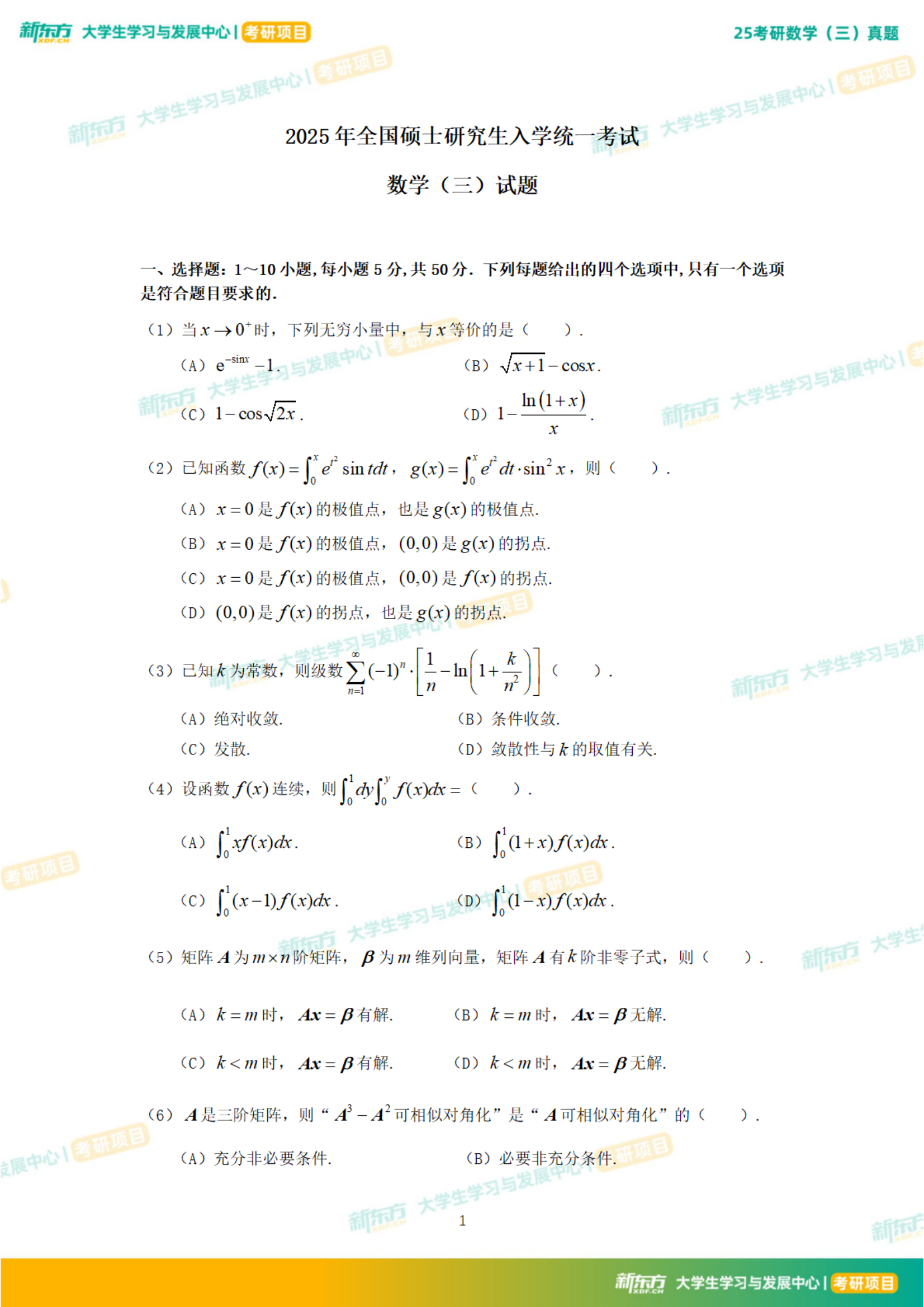 25考研数学三真题及解析出炉,帮助学员还原真实试卷内容,迅速完成估分。