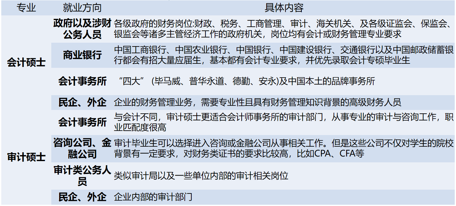 ②考编考公,优势也许就比不上会计专硕大了,因为很多岗位在招人的时候,如果适合审计专硕的,它一般也会招会计专硕。但会计专硕也是竞争最大,最难考的。