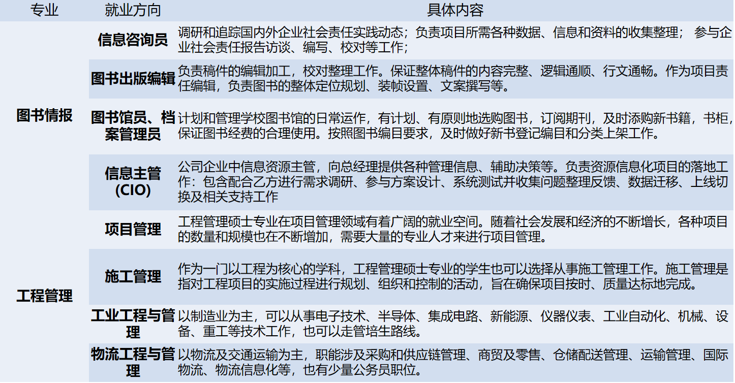 物流与供应链:物流工程管理、物流技术、供应链管理、采购等方向;