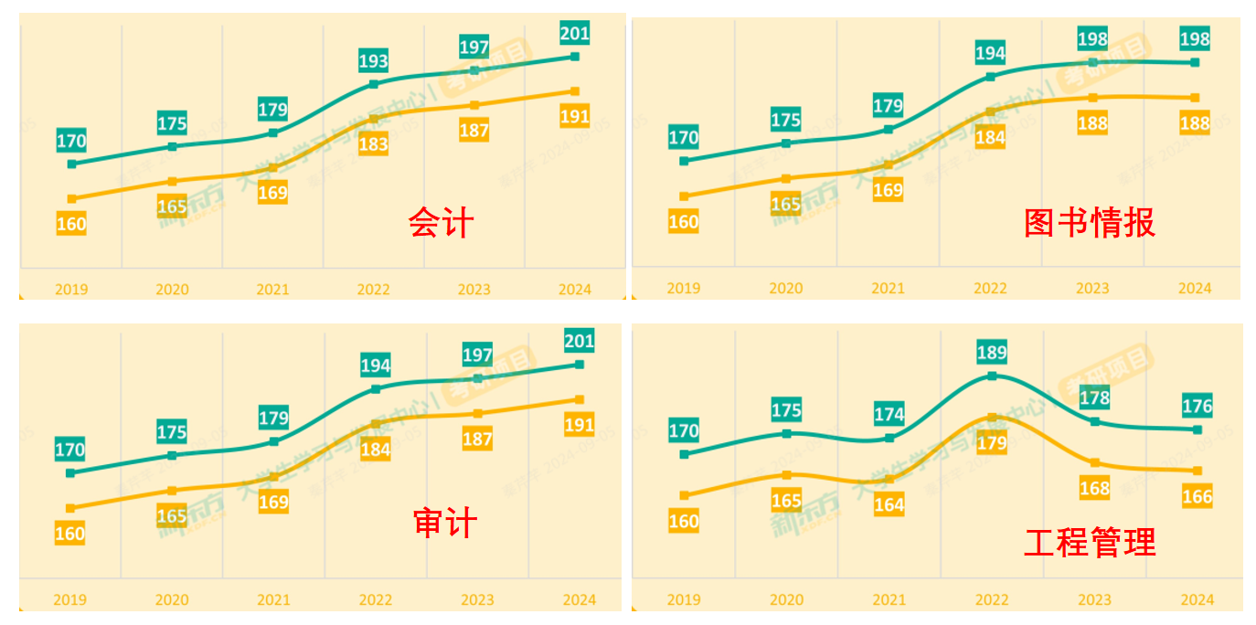 3.武汉理工大学会计专硕全日制分数线和招生人数历年变化不大,建议目标分数250+左右。