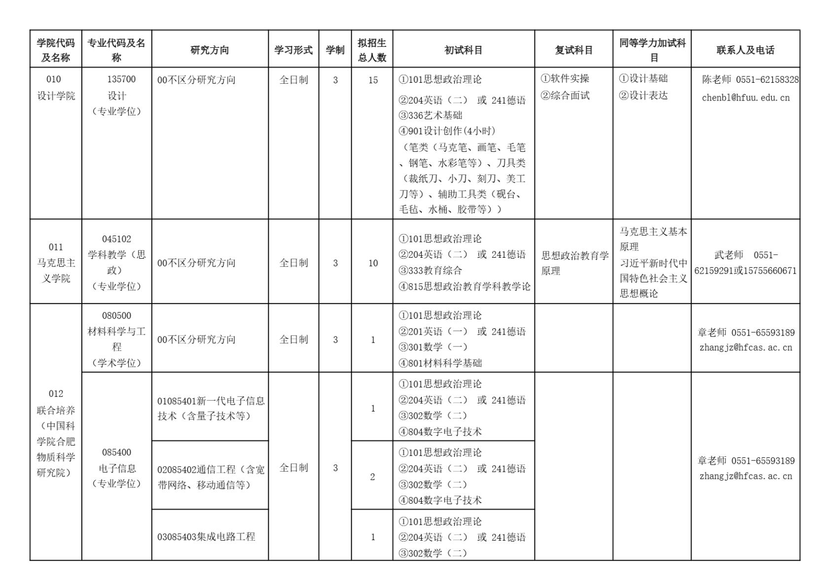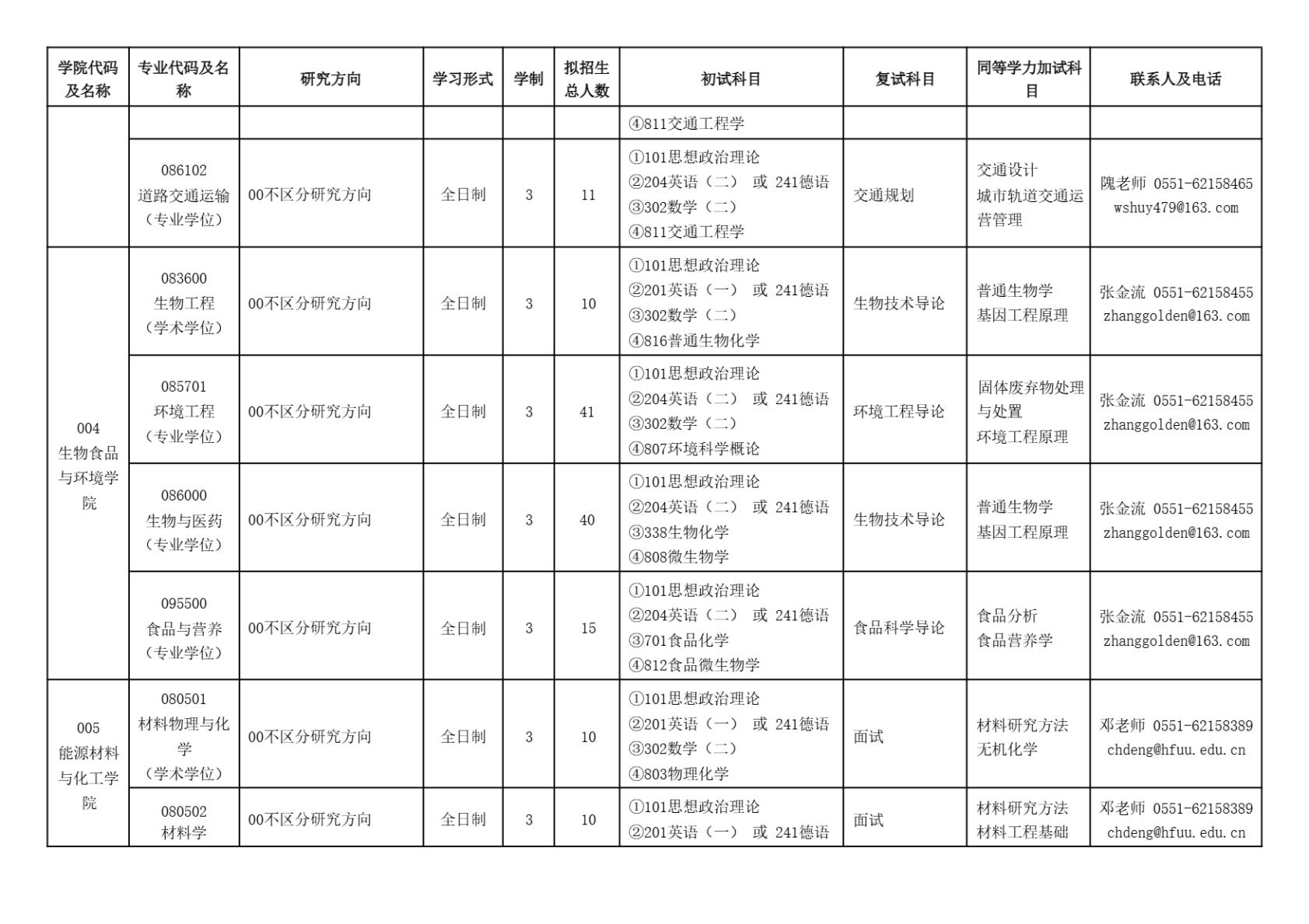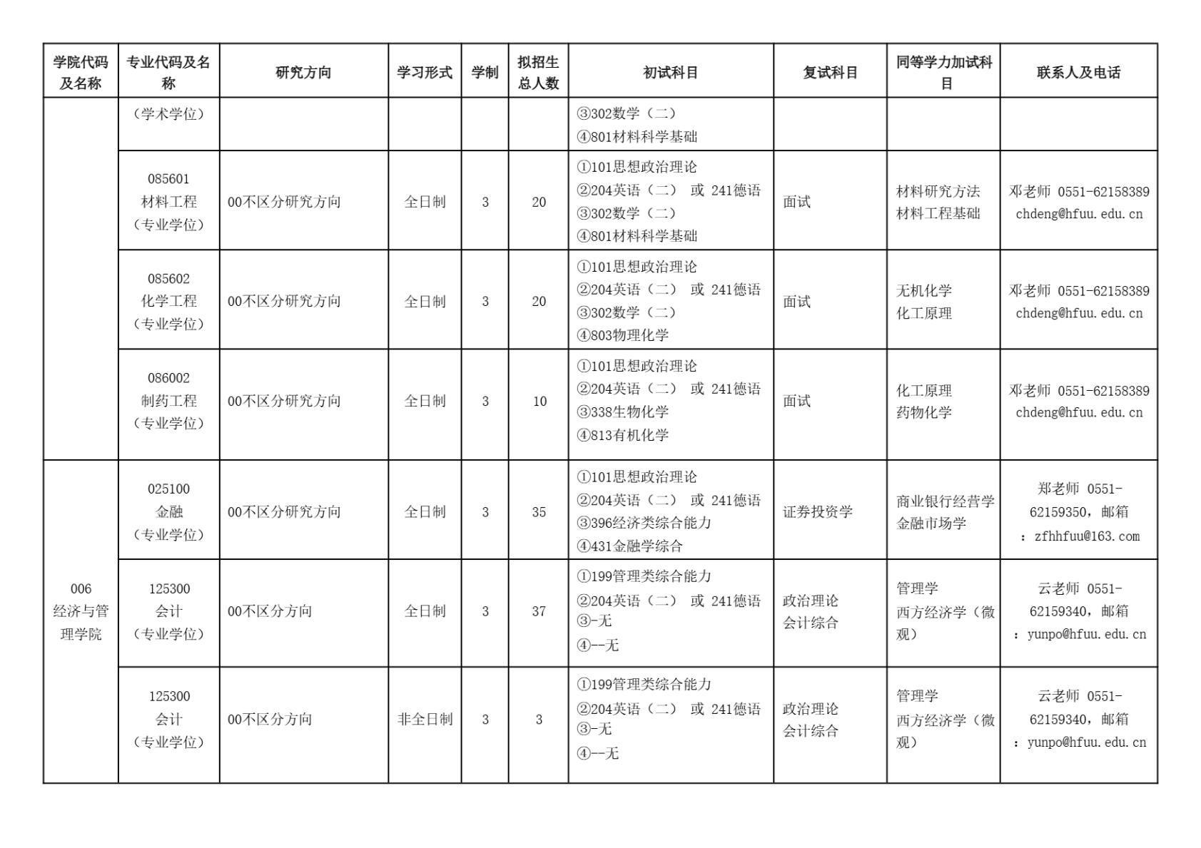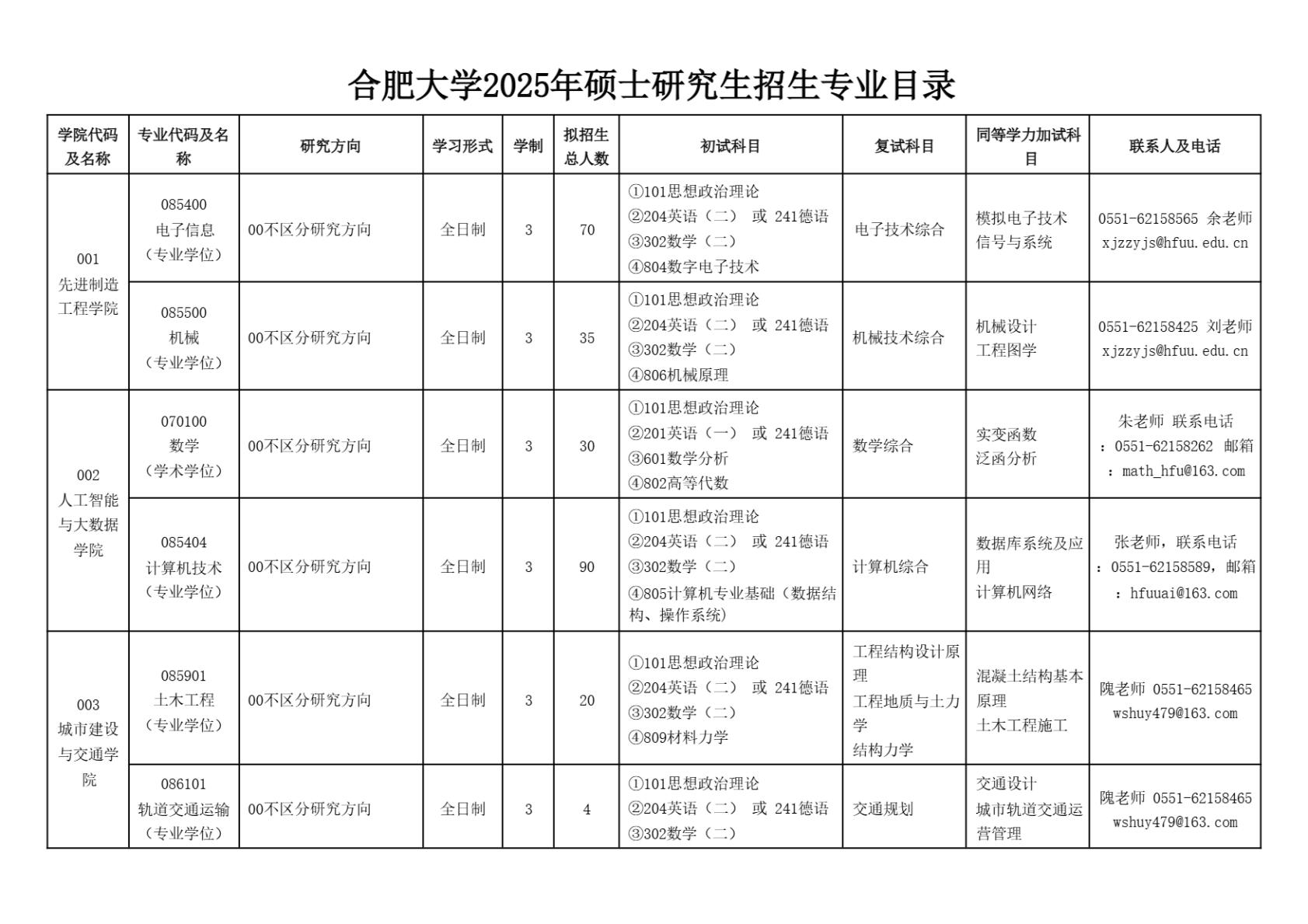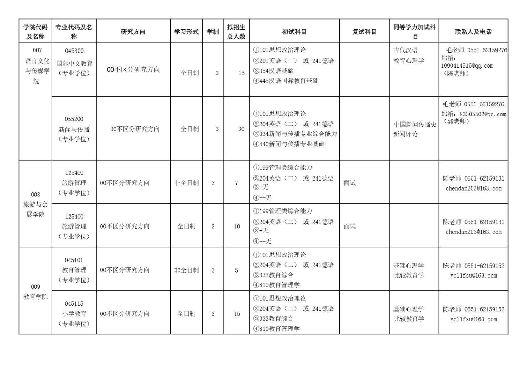 合肥大学2025年硕士研究生招生专业目录(含参考书目)