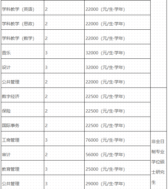 1.学术学位硕士研究生的学费标准为:非定向生8000元/年;定向生12000元/年。