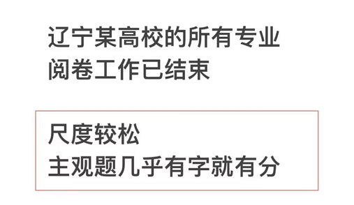 之前网传“辽宁某高校主观题阅卷较为宽松,几乎是有字就有分(言之有理)”,大家可能听过了。
