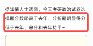 网上有传闻说今年的政治选择题分数比去高,分析题的得分明显要低很多。