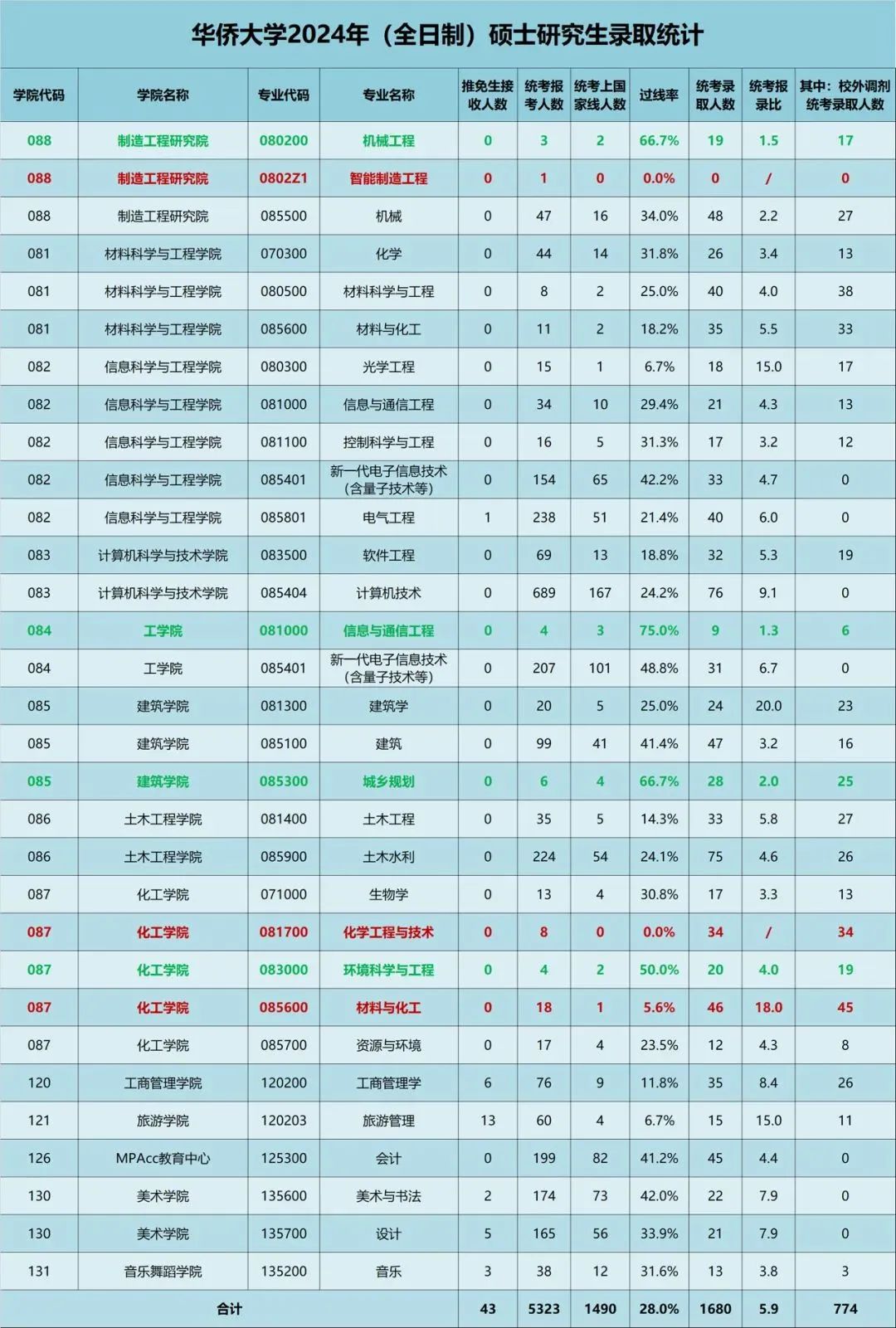 根据公布的数据,24考研,共有5323人统考报考华侨大学,通过国家线1496人,国家线平均过线率仅为28%。